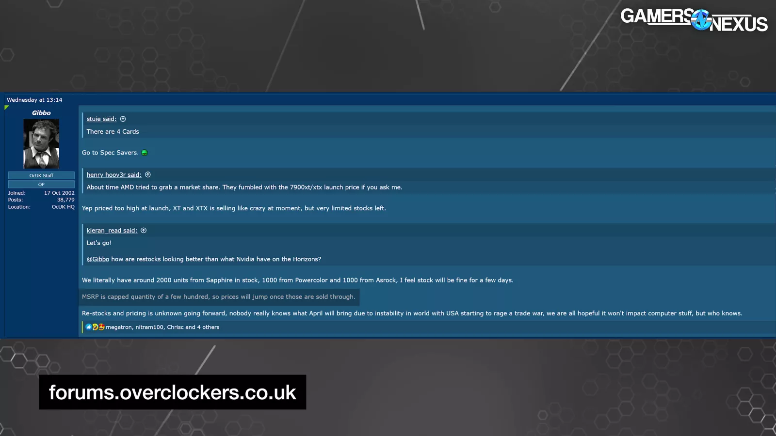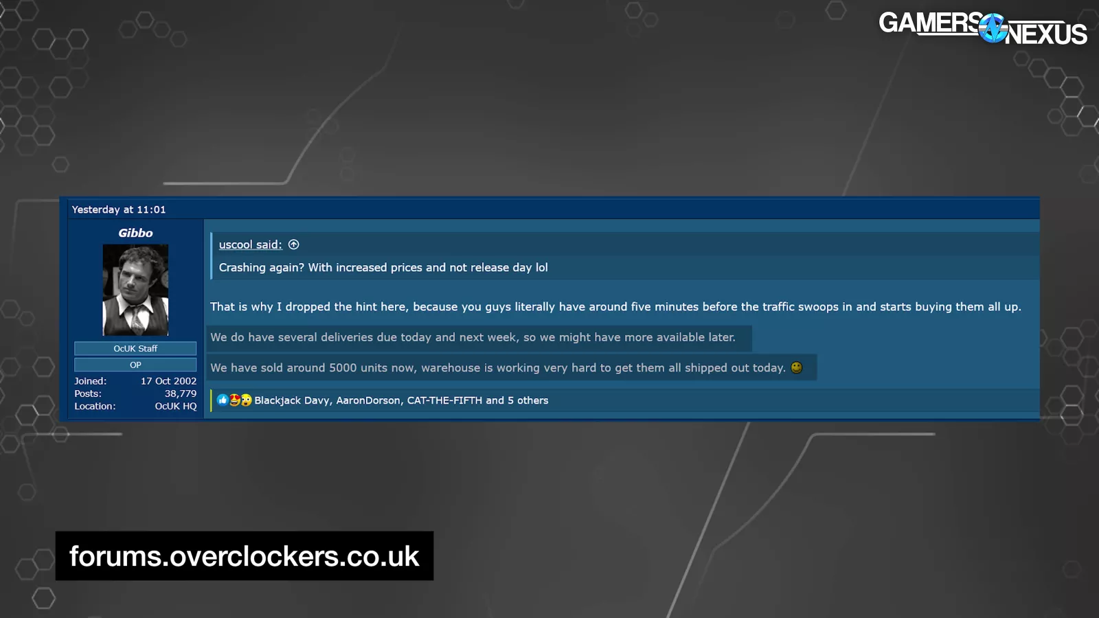 Overclockers UK also posted some numbers. Gibbo from OC UK posted this: