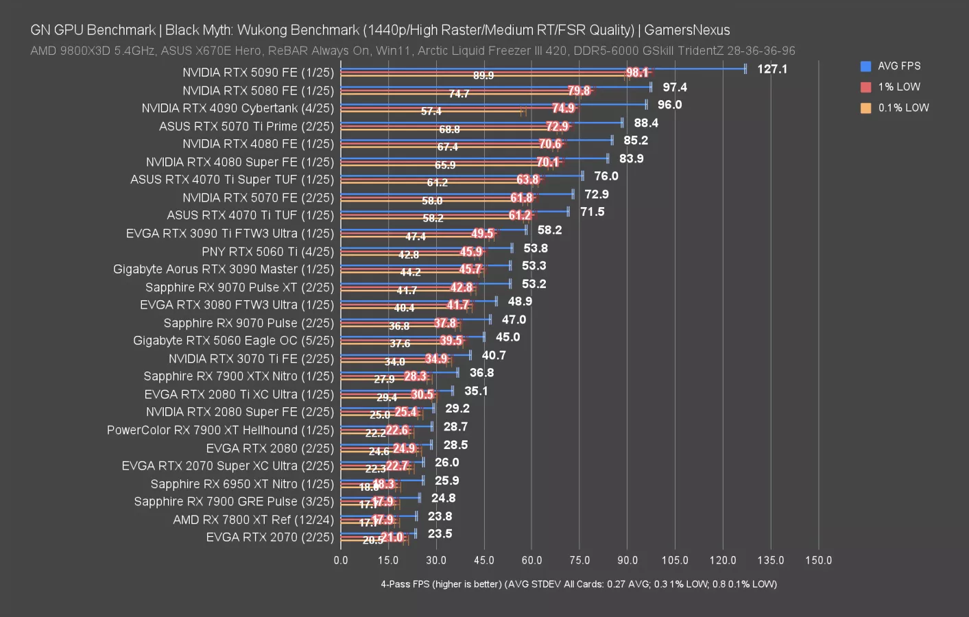 At 1440p with ray tracing, the RTX 5060’s 50 FPS AVG tied it with the 4060 Ti 16GB and 3070. The 7700 XT seems like a particularly useful landmark for future benchmarks and reviews.
