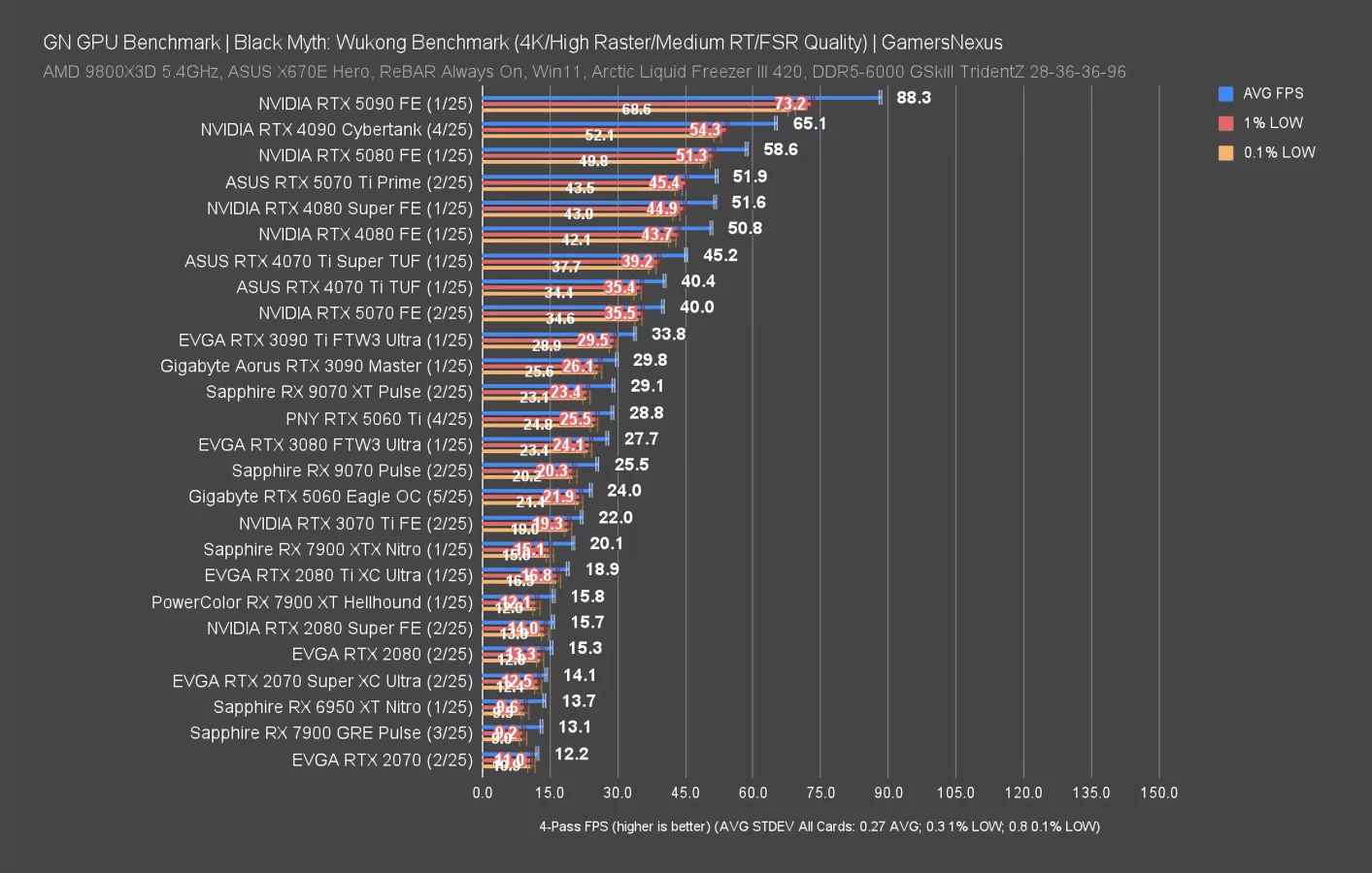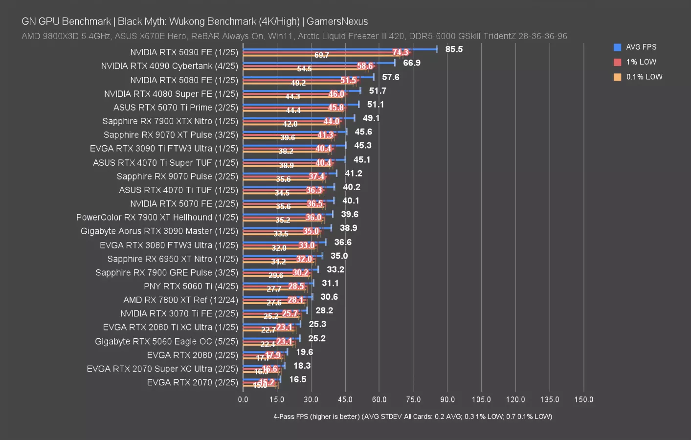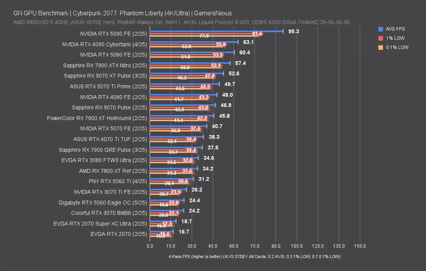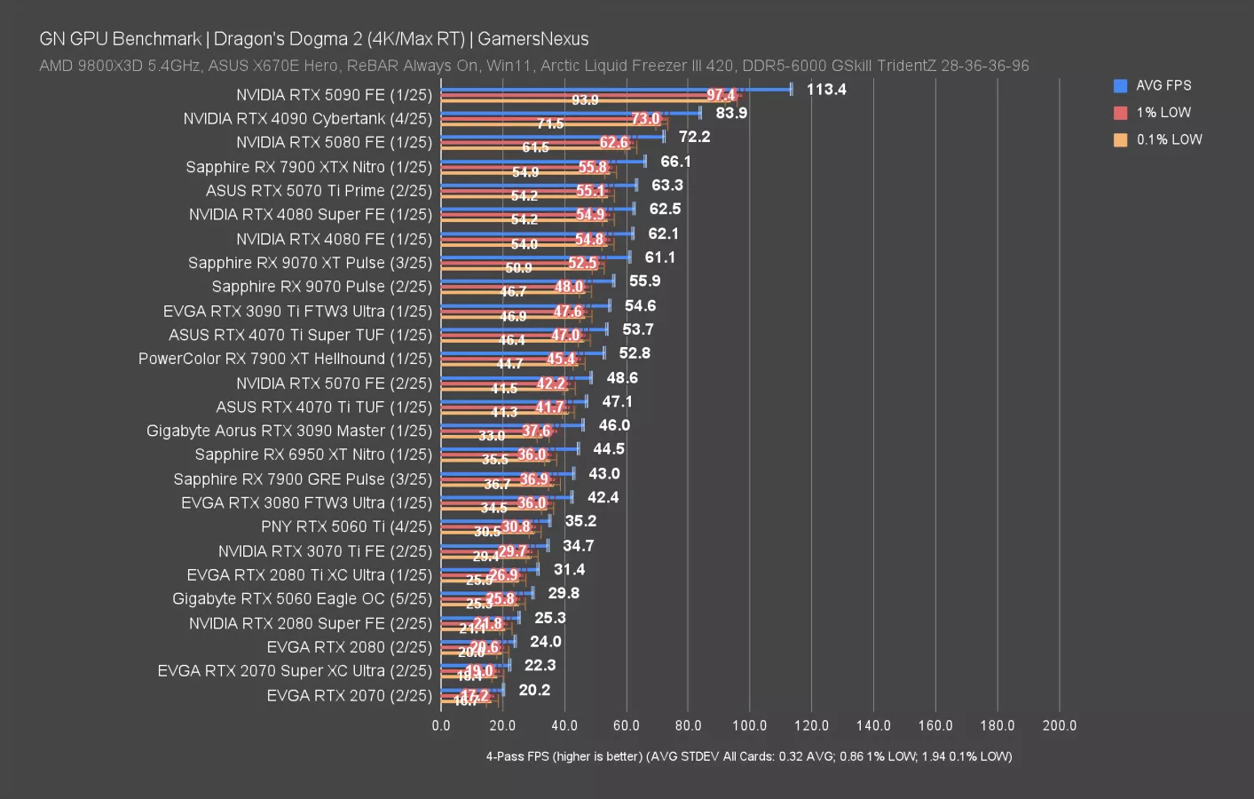 Final Fantasy 14: Dawntrail is up now, first at 4K. This particular set of tests is a weaker showing for the AMD RX 90 series, as we’ve shown in the 9070 XT review and 9070 review. NVIDIA is mostly competing against itself.