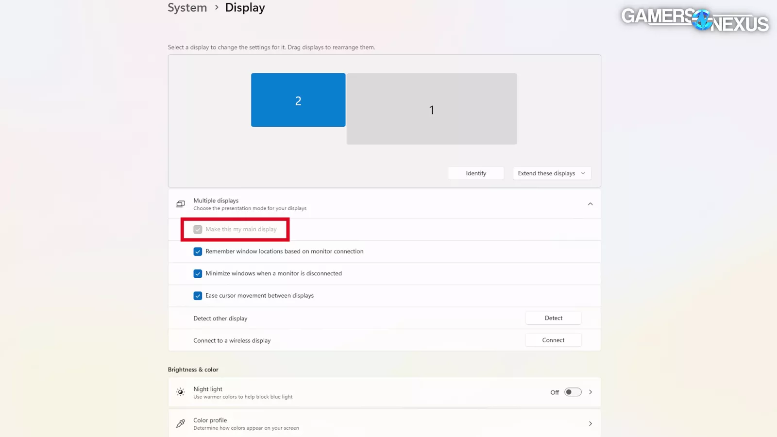 This is less to do with the physical ports being used and more to do with how Windows and the drivers are treating the monitors in their “1” and “2” slots. We couldn’t tell you why this behavior causes issues, but if you’re having trouble, swapping monitors 1 and 2 could potentially help.
