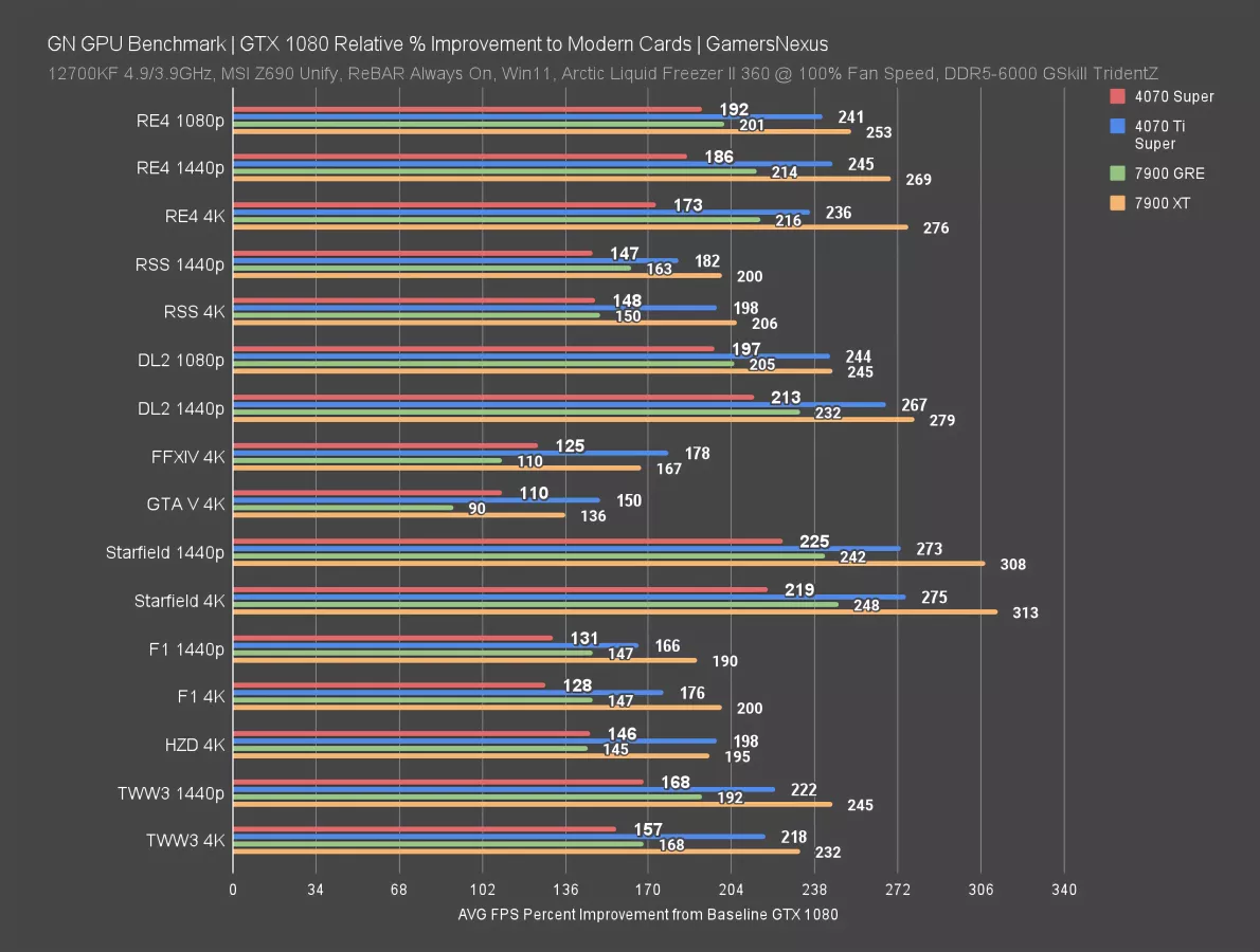 Recap: GTX 1080 vs. 7900 GRE, 7900 XT, 4070 Super, 4070 Ti Super