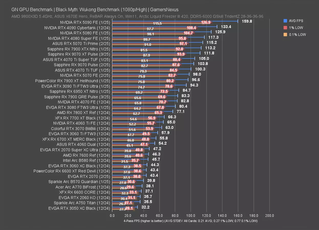 This is one of the games where the 5070 Ti pulled ahead of the 9070 XT in a noteworthy way, so we see some of that apply to the 9070 and 5070.