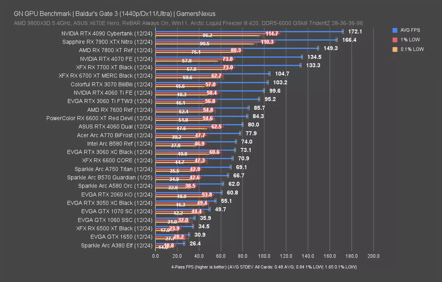 Next up is Baldur’s Gate 3. We only run this test at 1440p and 4K due to the low load.