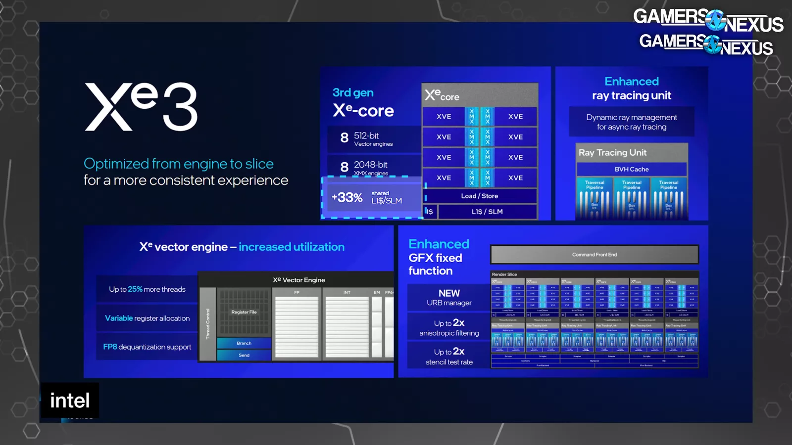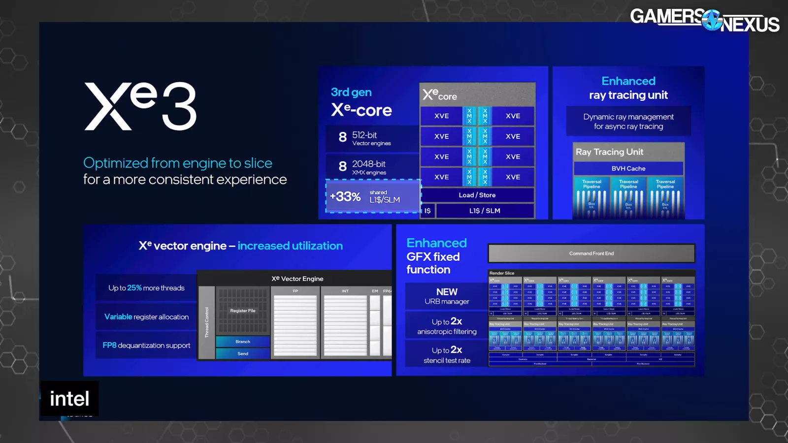 For Xe3, Intel noted to us some of its driver improvements and software control panel focus as well, all of which should benefit the company as it moves toward its eventual dGPU Celestial GPUs.