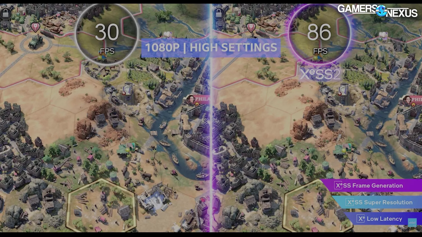 It seems like Intel’s argument is that the entire frame gen process takes less time than drawing one real frame, and is therefore better or something, but this totally ignores image quality. We’ve shown with both AMD FMF and NVIDIA MFG that the image quality sacrifice isn’t always worth it. Sometimes it is, but it’s not always as simple as being that way. Intel stated that these frames upscaled with XeSS-SR are the same quality as native, which is unlikely. Intel stated: “That frame is as good as the prior picture, the native frame. But it’s actually being run quicker.” We doubt this will be broadly true and will evaluate later on dGPUs. It was bullshit when NVIDIA claimed it, too. The quality can be good, but is rarely as good.
