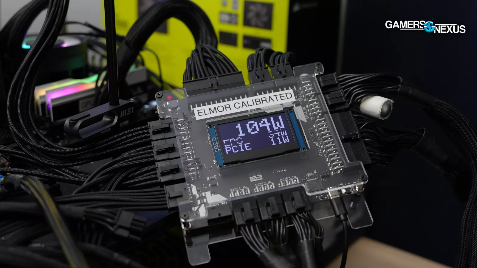 For efficiency as usual, we use a power interposer in between the GPU and the power supply. That means we’re intercepting slot power and the PCIe power through the cables and we do that so we can isolate the GPU entirely, measure its power consumption during a workload. Then we take the frame rate numbers to do some simple math and produce an efficiency number.