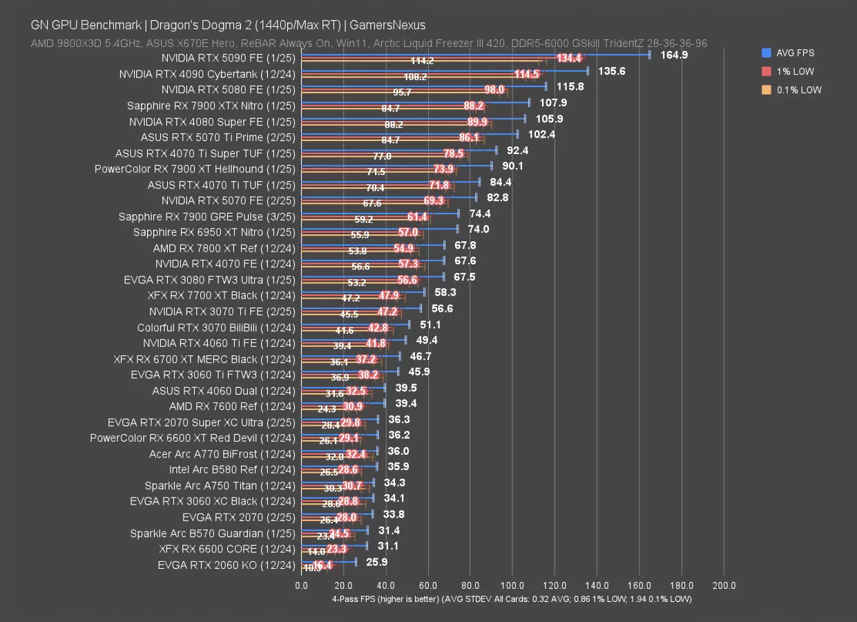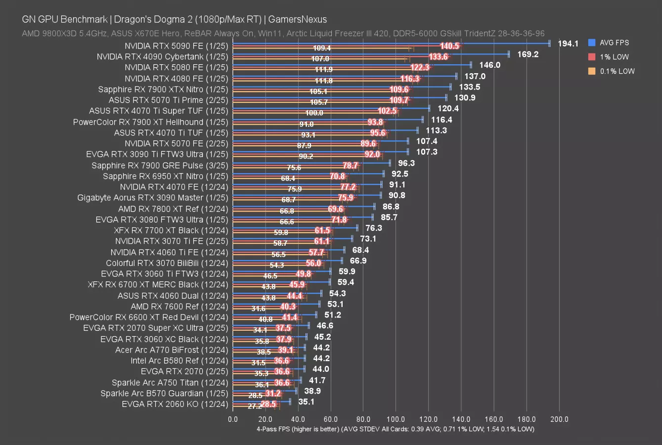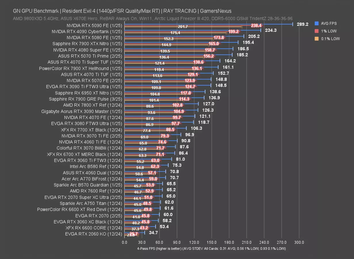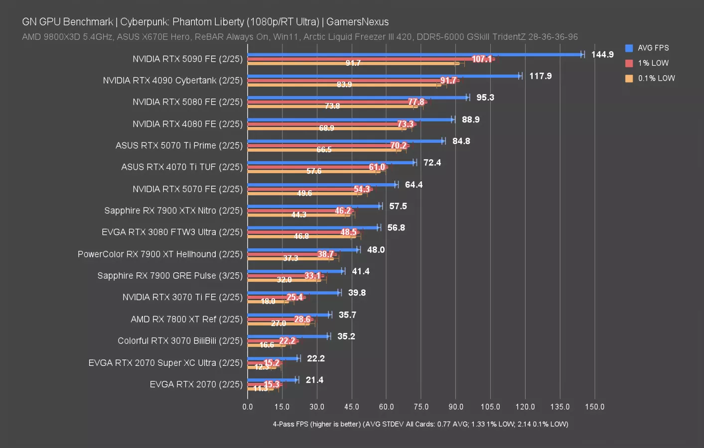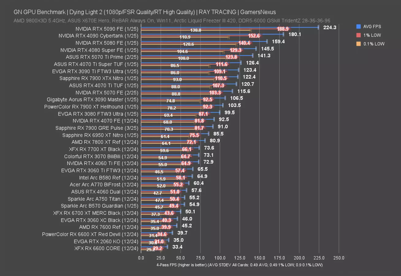 Anyway, the 7900 XT held a 61 FPS AVG in this one, with the XTX just past the 5070 Ti.