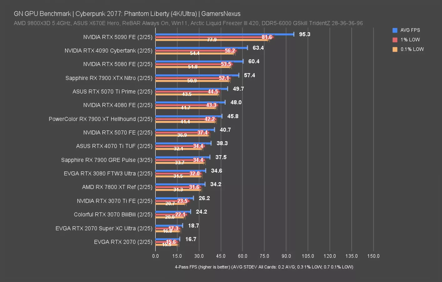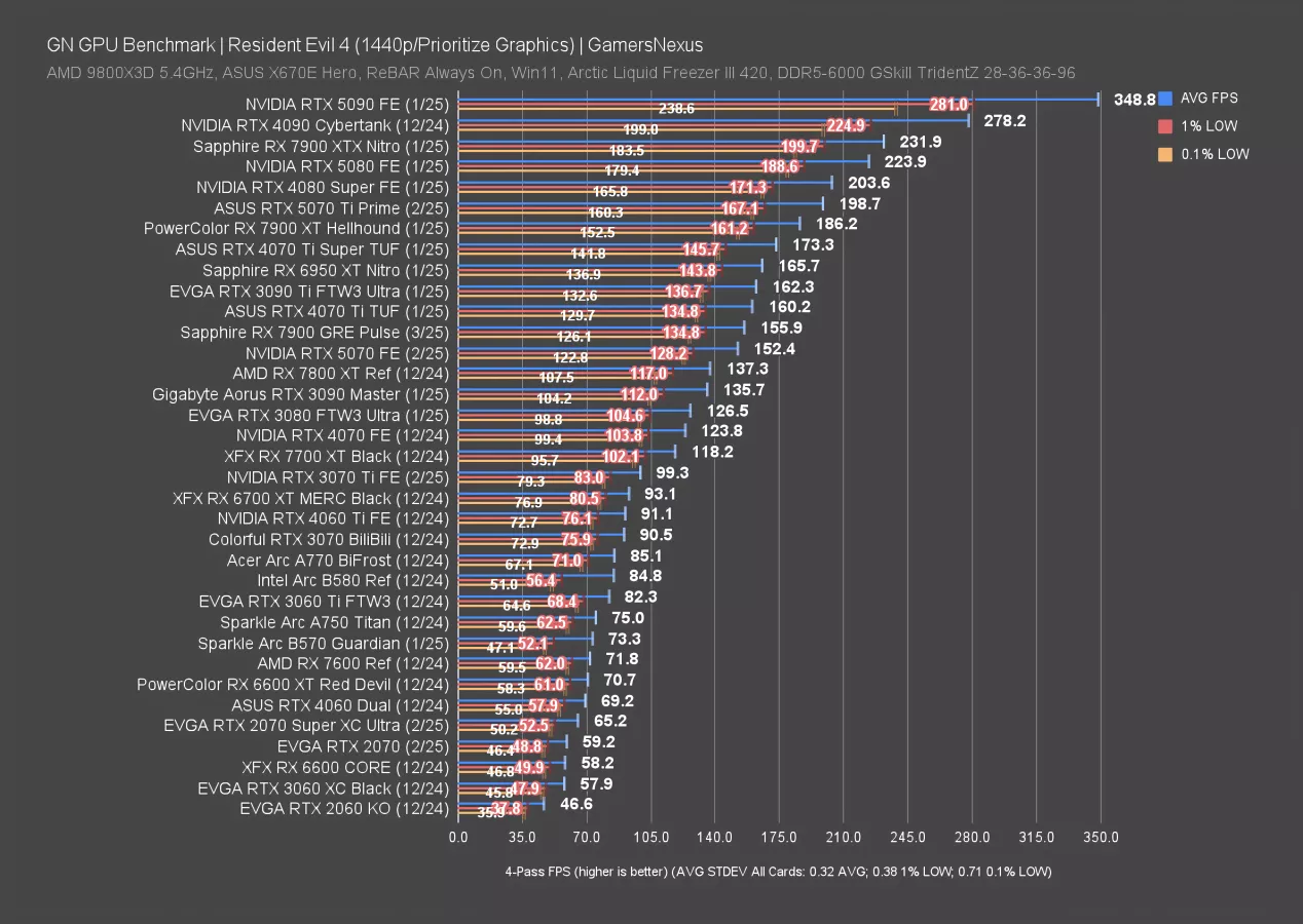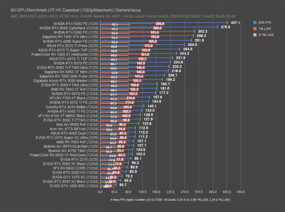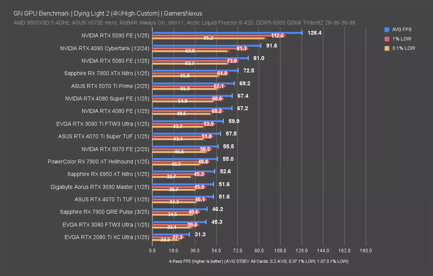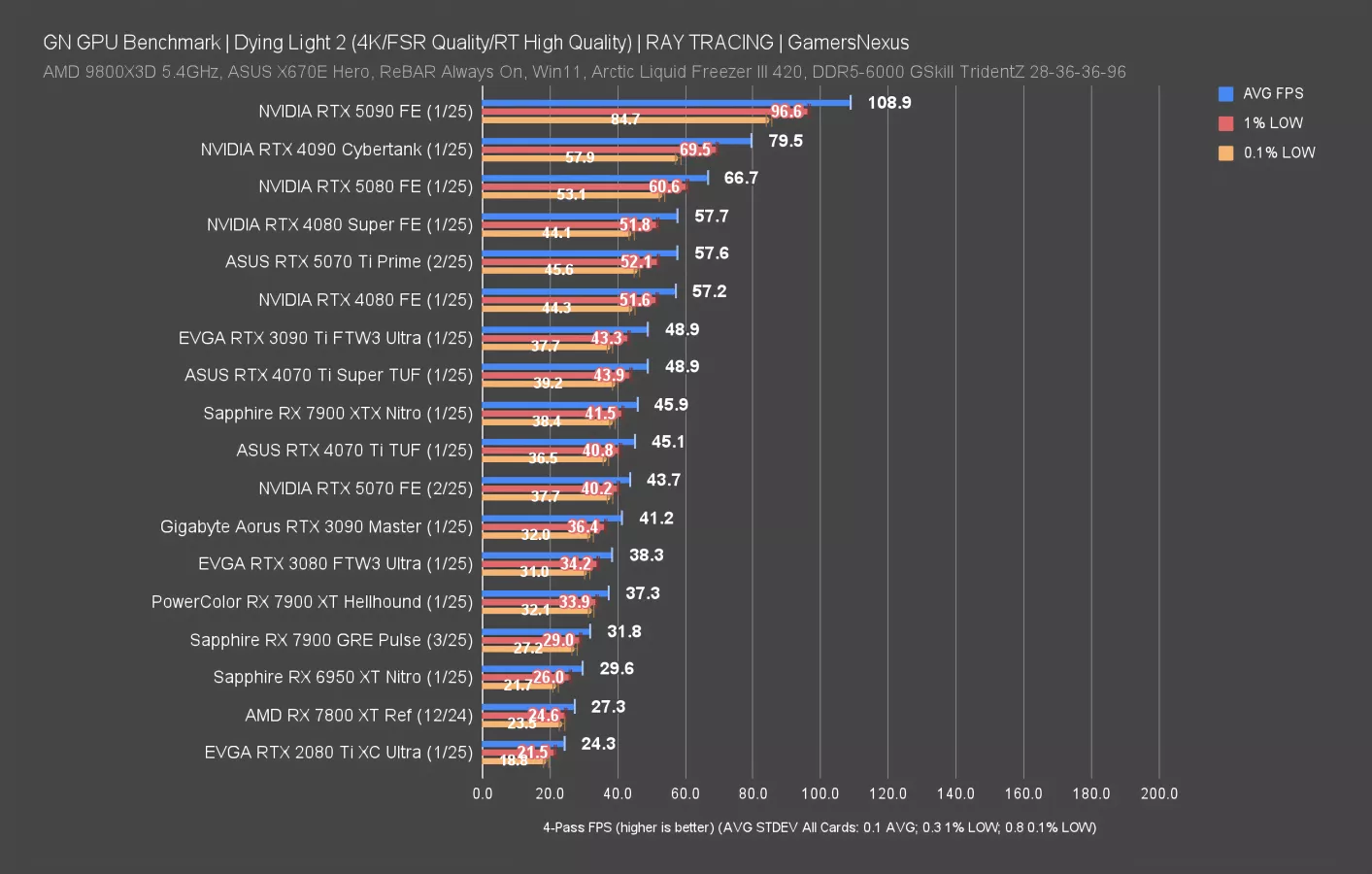 Anyway, the 7900 XT held a 61 FPS AVG in this one, with the XTX just past the 5070 Ti.