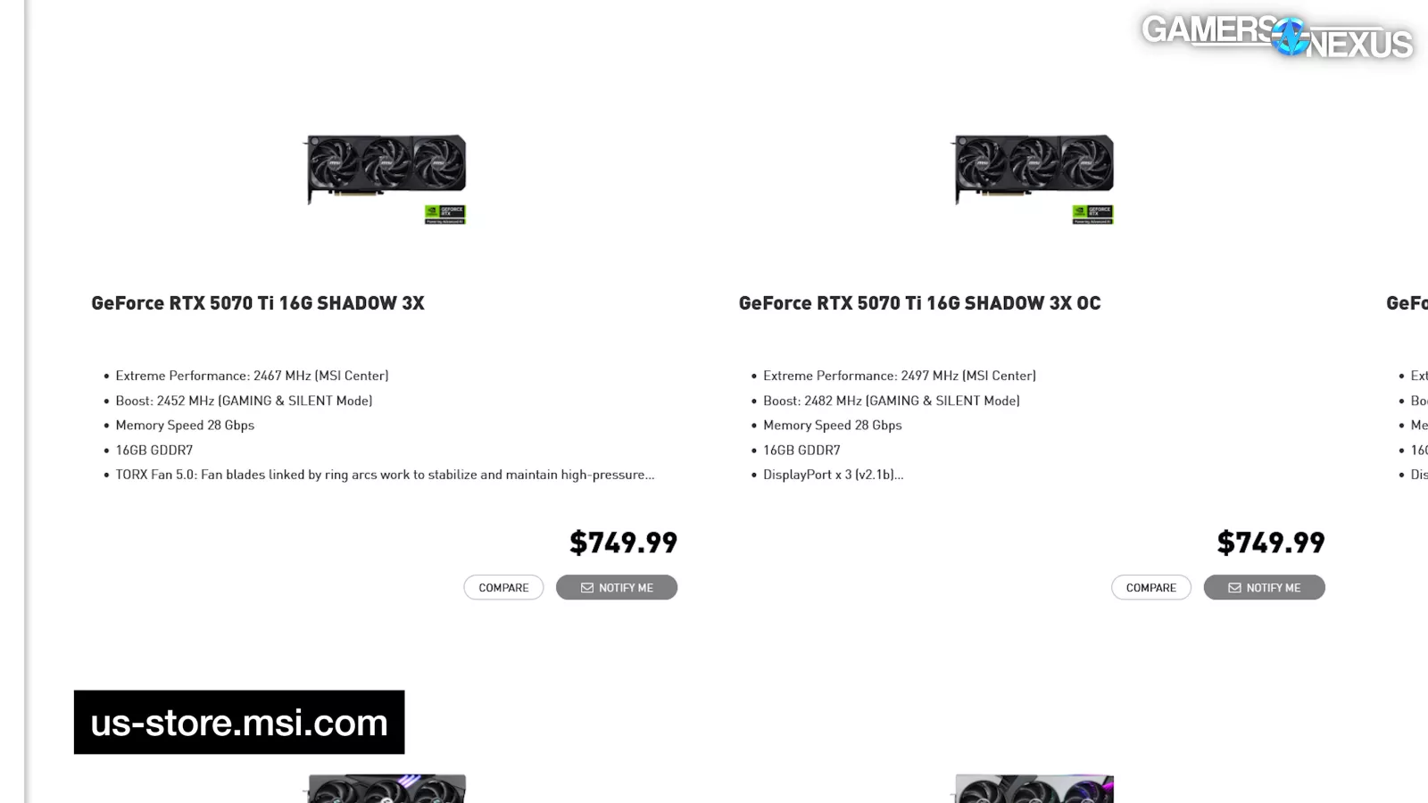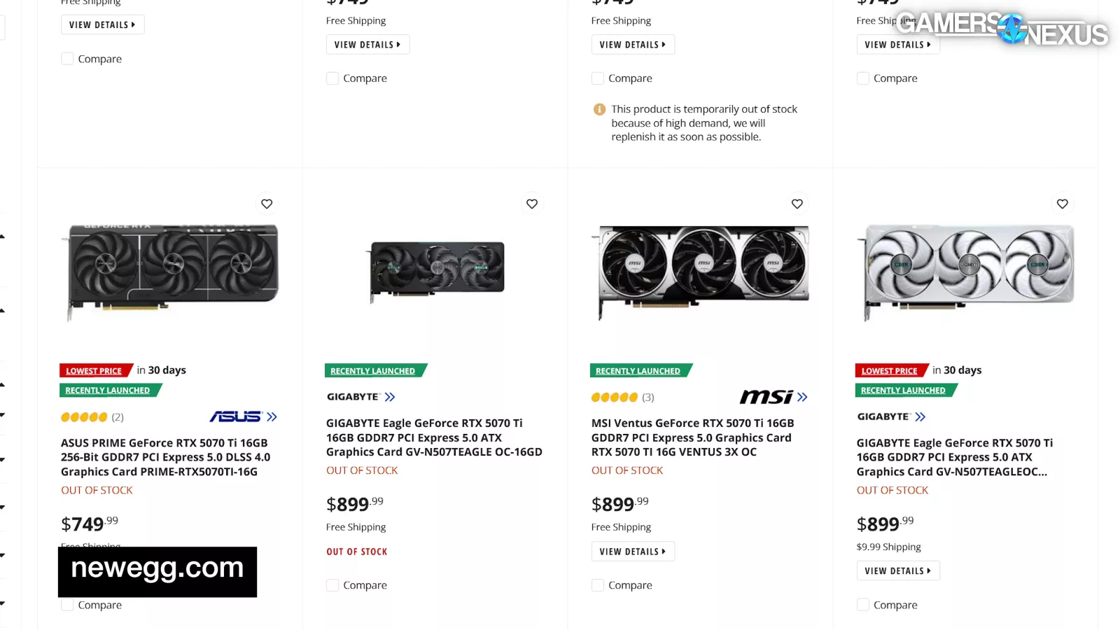 There are 5 MSRP models of the 5070 Ti (read our review) on Newegg, which is just enough to technically claim the MSRP exists. The rest of them are higher, often $900 and over. Board partners have now directly repriced their cards, with VideoCardz noticing that MSI had eliminated all of its $750 RTX 5070 Ti cards just before the 5070 launch.