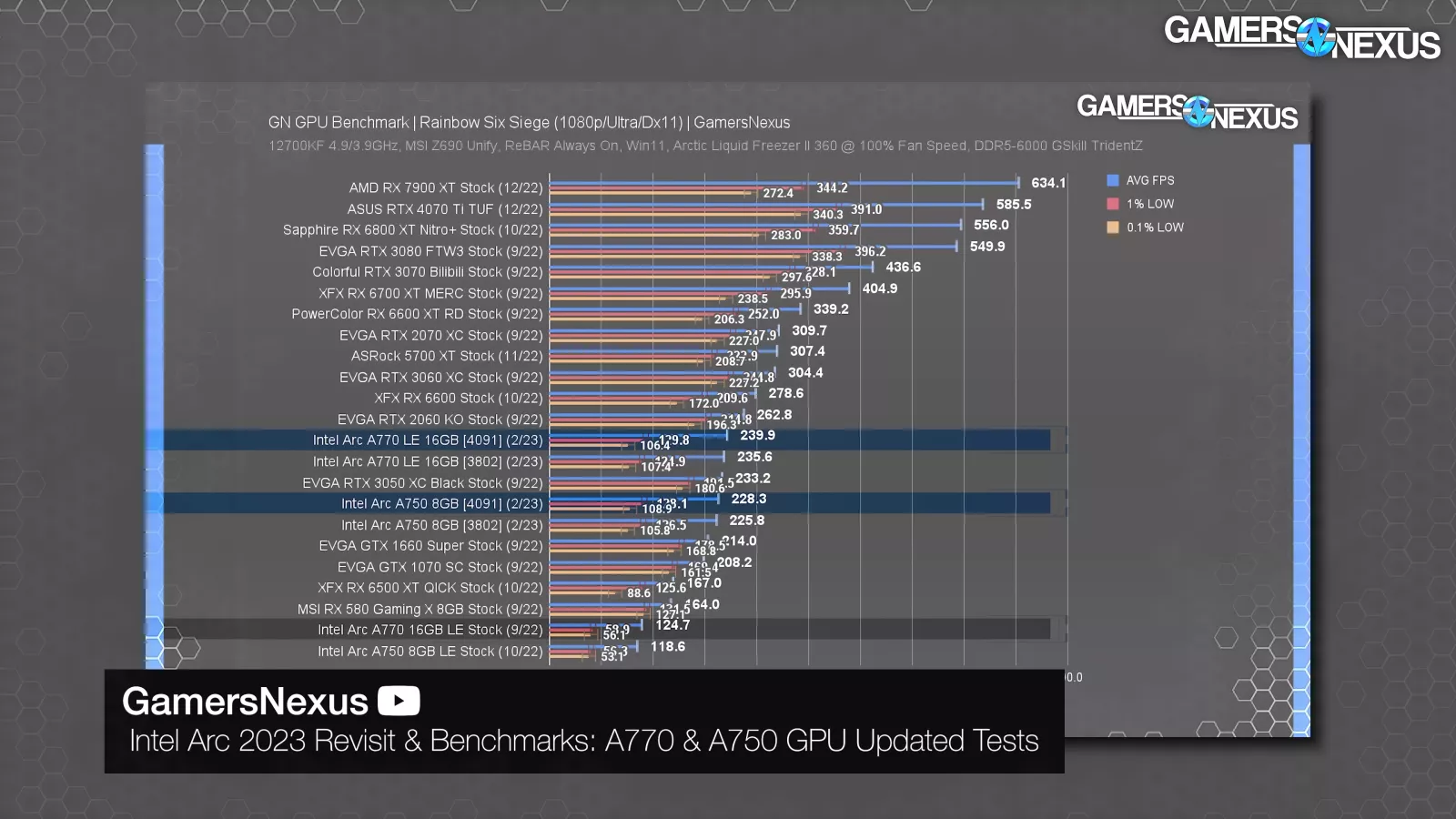 In this chart from our original coverage of the fix, you can see that the A770 and A750 went from the bottom of the chart toward the middle. That’s a big uplift.