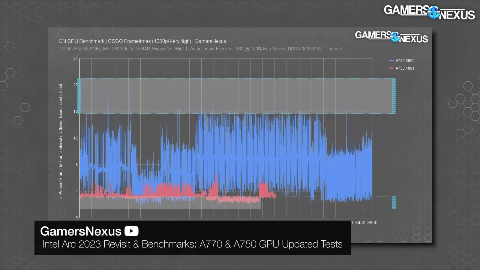As we mentioned, before CS2 replaced it, CSGO’s bugged performance was also resolved. The frametimes were some of the worst consistency we’d seen in a long time, and Intel fixed that early this year. The game has since been replaced, but the groundwork for the fix remains in the drivers.