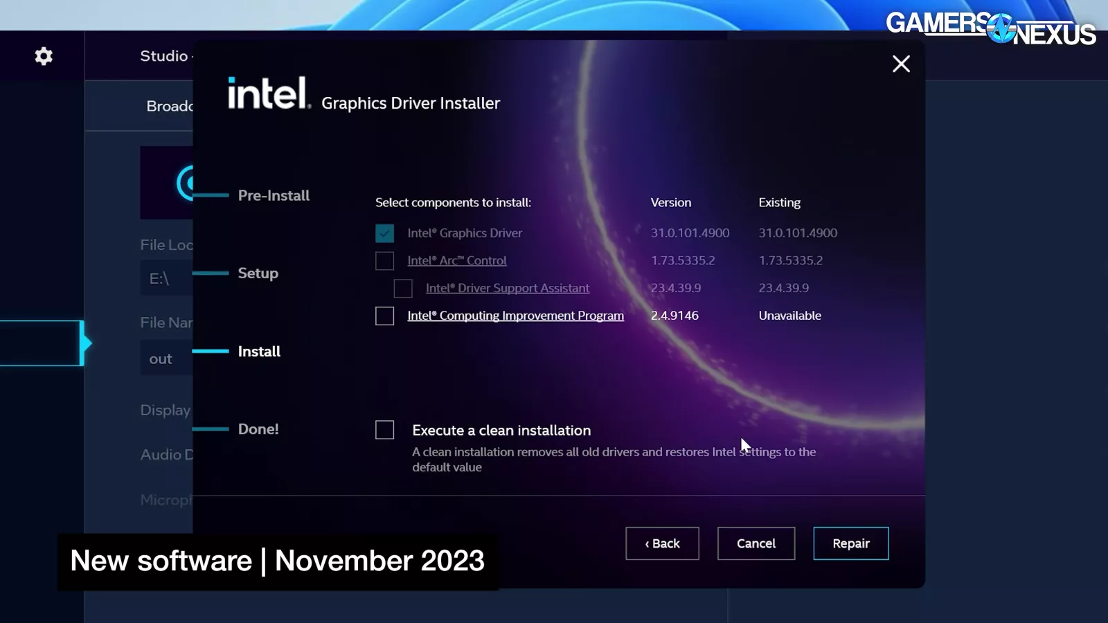 Previously, rerunning the driver package installer would only give the option to repair the current install, without options to change what features are installed or reinstalled. Intel has improved this behavior.