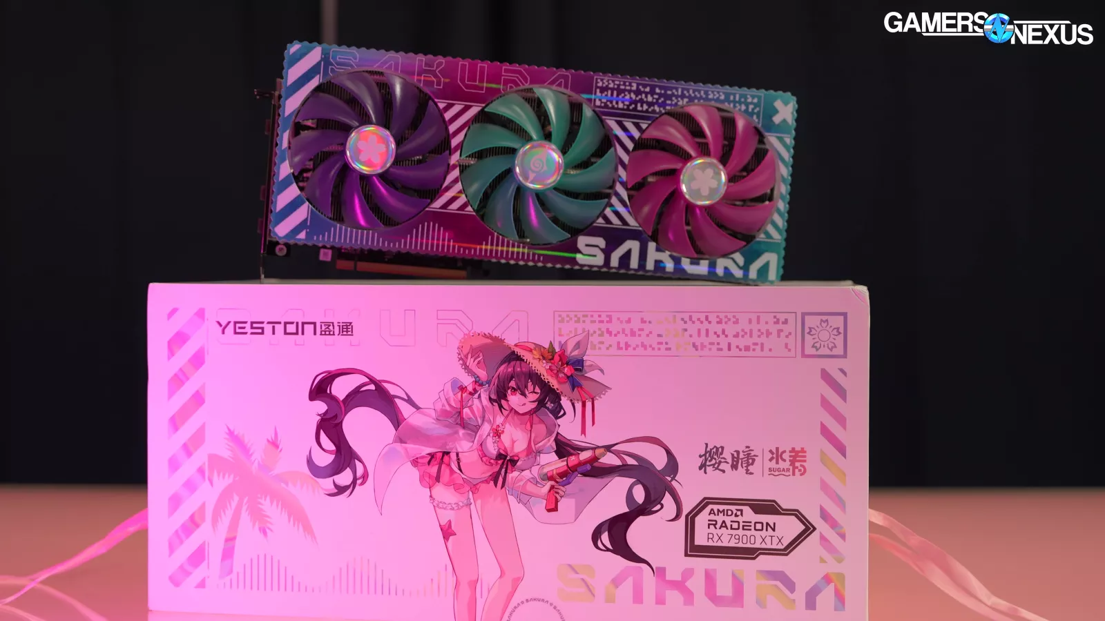 In the time since, we also looked at Yeston’s Cute Pet aluminum mini PC case. We also tested their RX 5700 XT, which we called “Waifu edition.” We later looked at their RX 6700 XT Sakura card with blue, purple, and white coloring, and most recently, we tested Yeston’s 7900 XTX Sakura Sugar GPU, which actually had a less fan-service-y thematic and blended some neon Cyberpunk-like styling in a way that makes it clear the big video card partners can absolutely do more - and it doesn’t have to just be pink and purple, either.