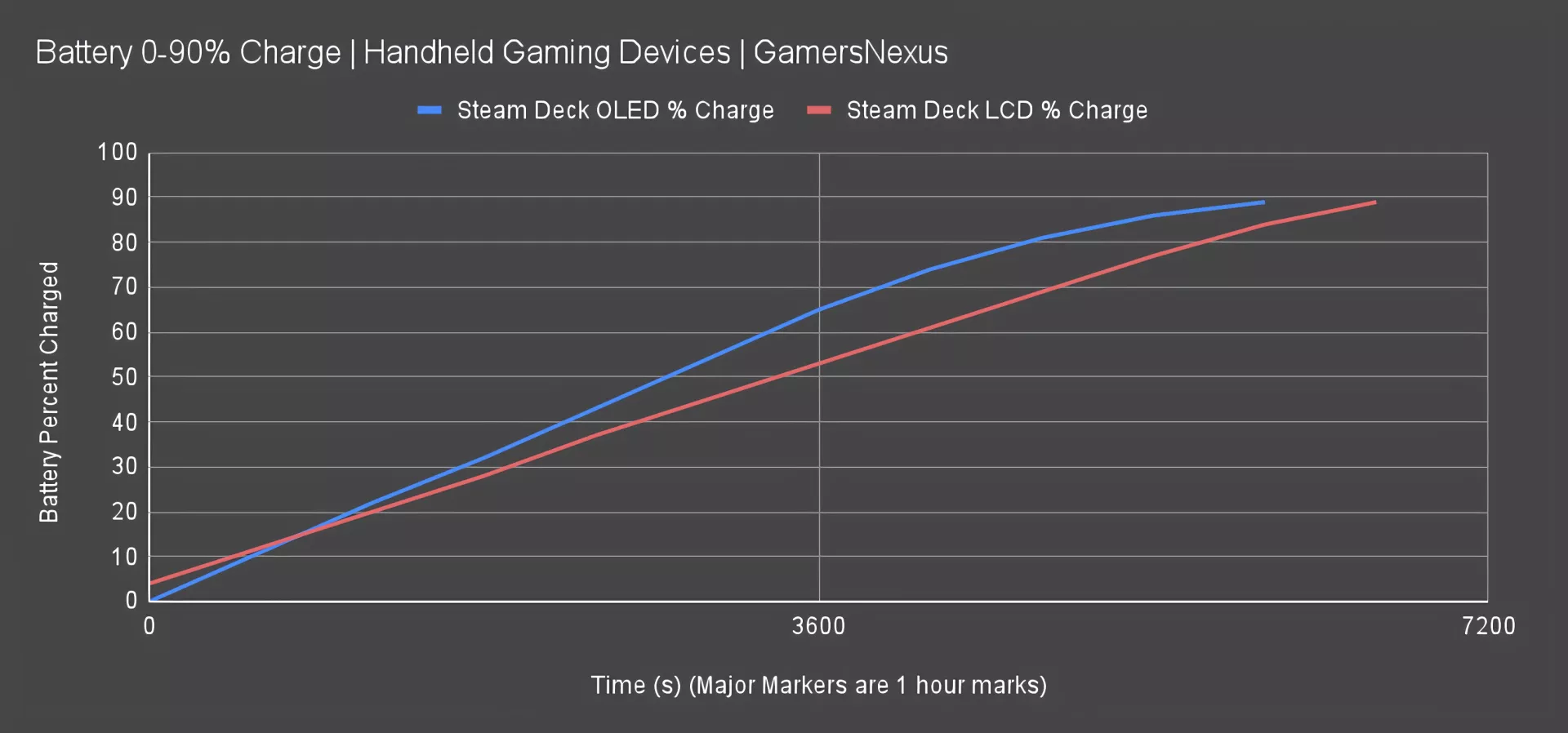 In total, the OLED took 205 minutes to charge, a 22% longer charge time than the LCD's 168 minute total charge time -- but its battery is 25% larger and there is more to the story.