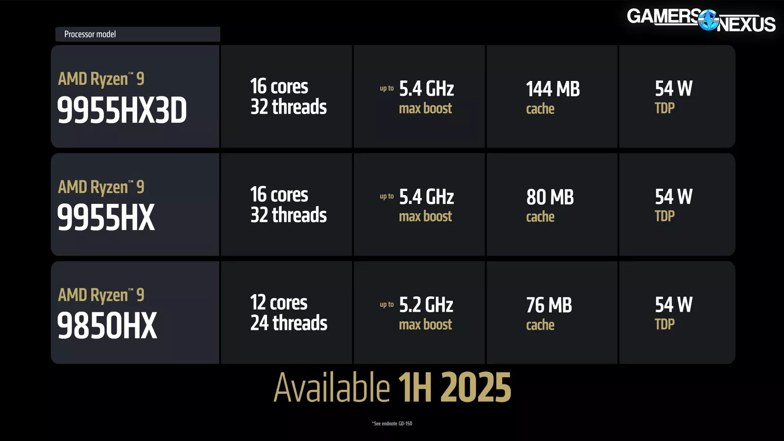 AMD’s new mobile CPU is the FireRange AMD Ryzen 9 9955HX3D that’s releasing in 1H 2025, and it’s joining the 9955HX and 9850HX mobile parts.