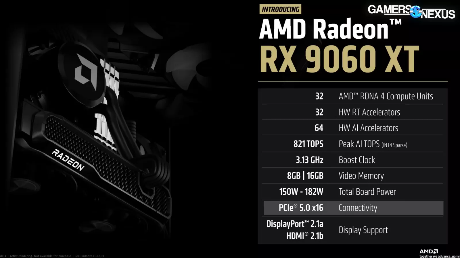 These 9060 XTs will be direct competitors to NVIDIA’s 5060 Ti cards, even mirroring the same VRAM configurations. Despite identical memory sizes, NVIDIA’s 50 series cards utilize a newer GDDR7 memory compared to AMD’s GDDR6. As for how much that matters, that depends on the architecture and how much it’s going to rely on the memory bandwidth and that extra speed. We’ll look at it in testing and see how it performs in the real world.