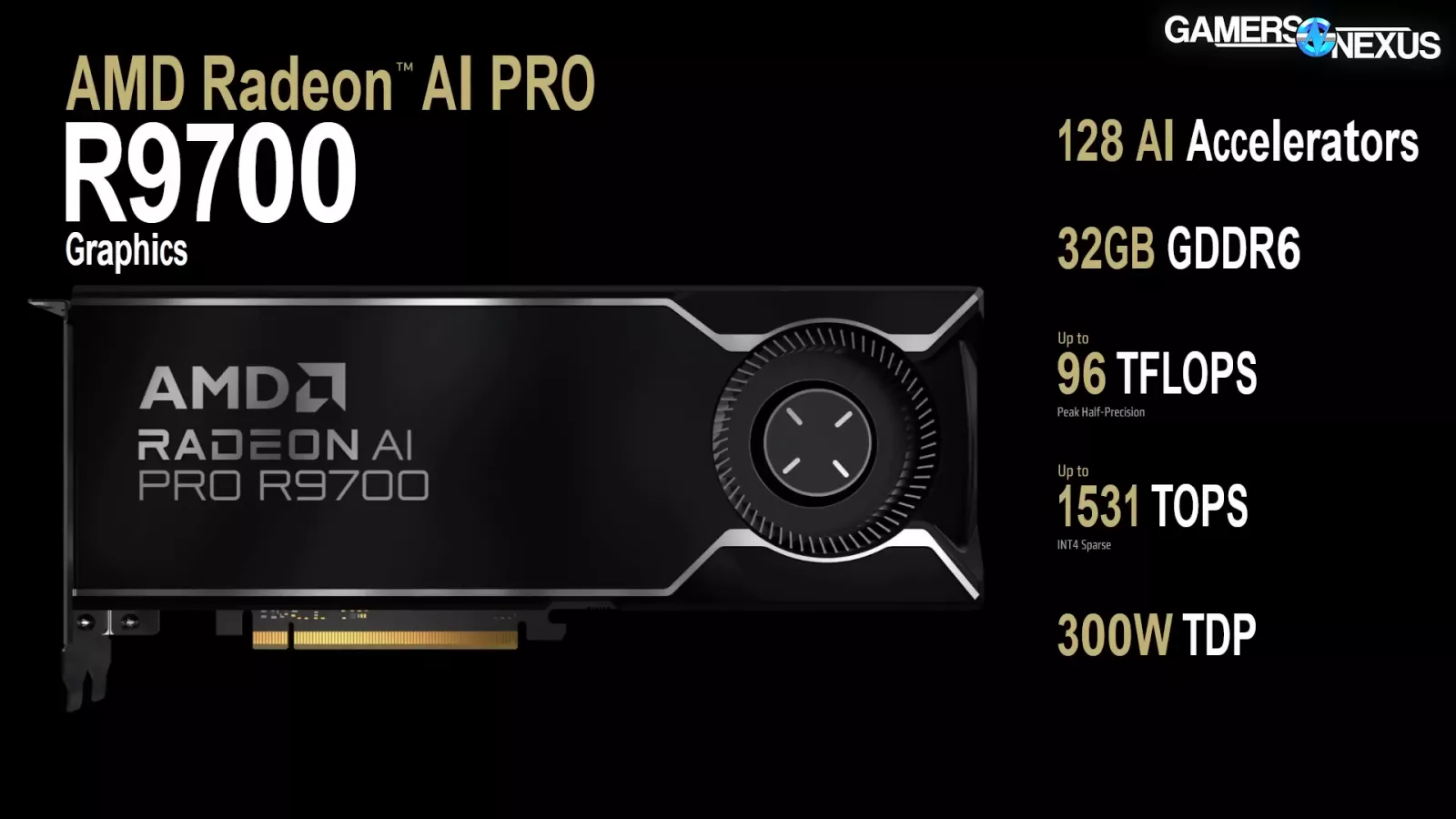 - AMD also revealed the 9995WX, its new AI Pro workstation GPU, which will come with 128 AI accelerators, 32GB of GDDR6 memory, up to 1531 TOPS, and a 300W TDP