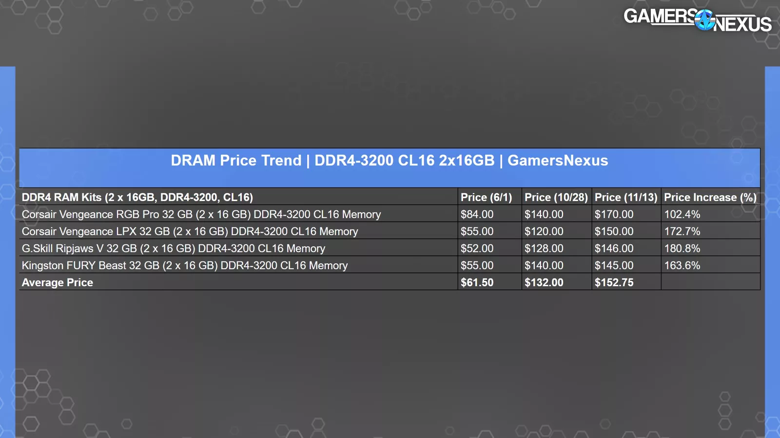 Corsair Vengeance RAM climbed from $135 to $230, seeing a 70% increase.
