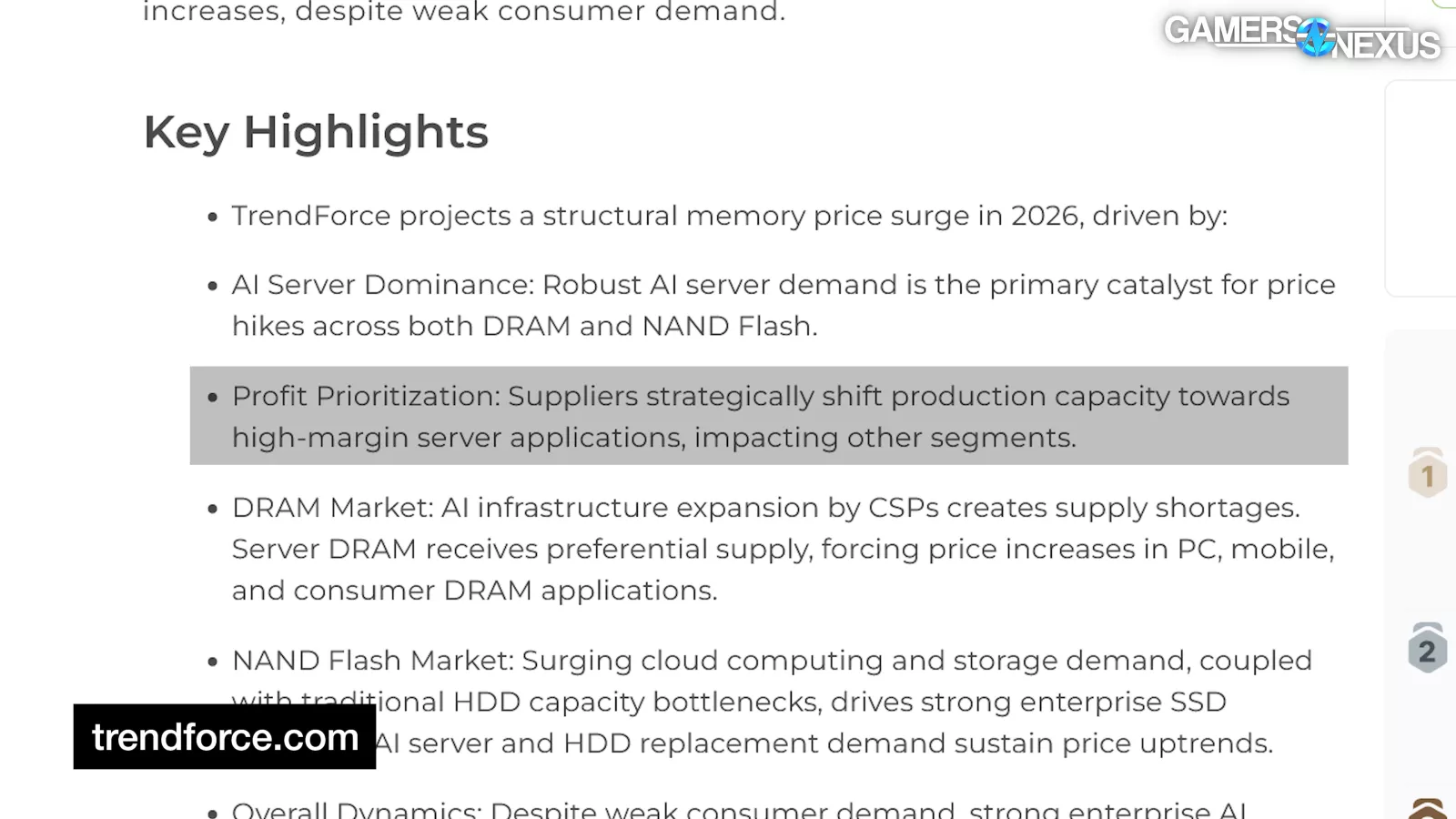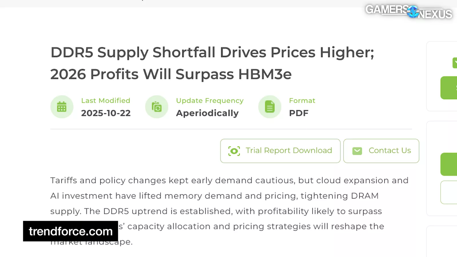 Suppliers have also begun diverting supply resources away from desktop and towards higher margin HBM and server memory instead.