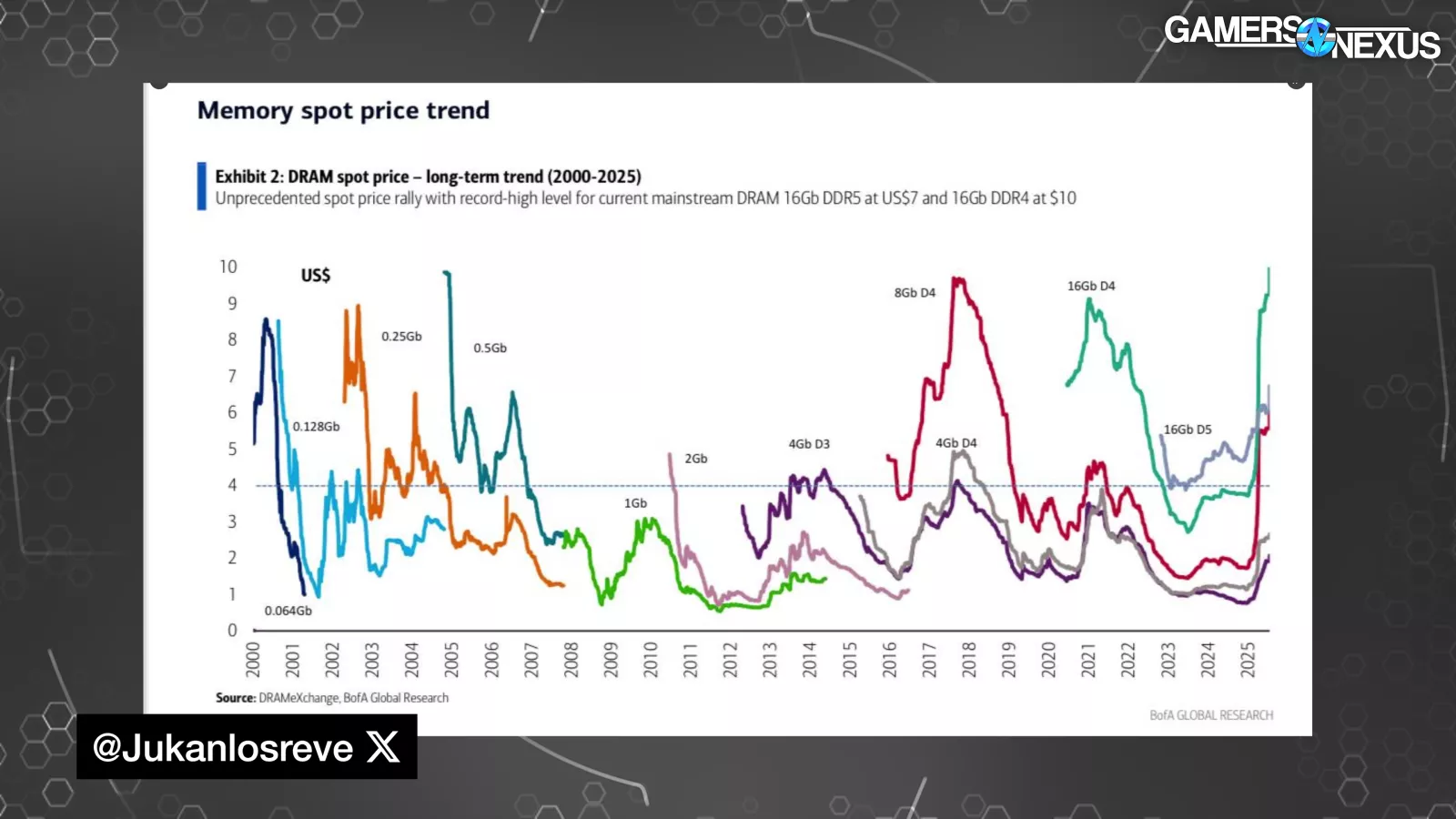 As seen in this “Long-Term Trend of DRAM Spot Prices (2000 - 2025)” graph found via Jukanlosreve on Twitter:
