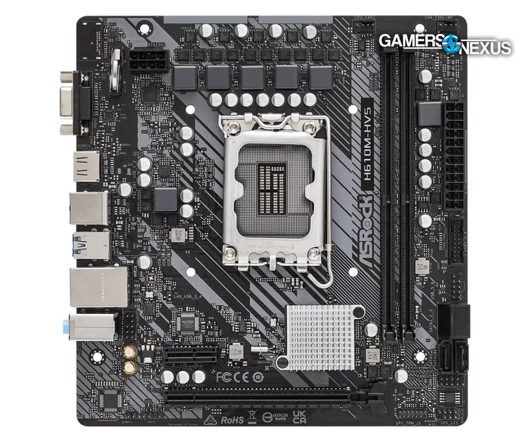 This isn't a good motherboard. But it's fine -- it'll get the job done. You should not use this for in-socket upgrades in the future, as the VRM cooling will be insufficient to handle higher wattage CPUs; however, for the 12100F in our build today, it will be acceptable. This is especially true with the help of the downdraft stock cooler.