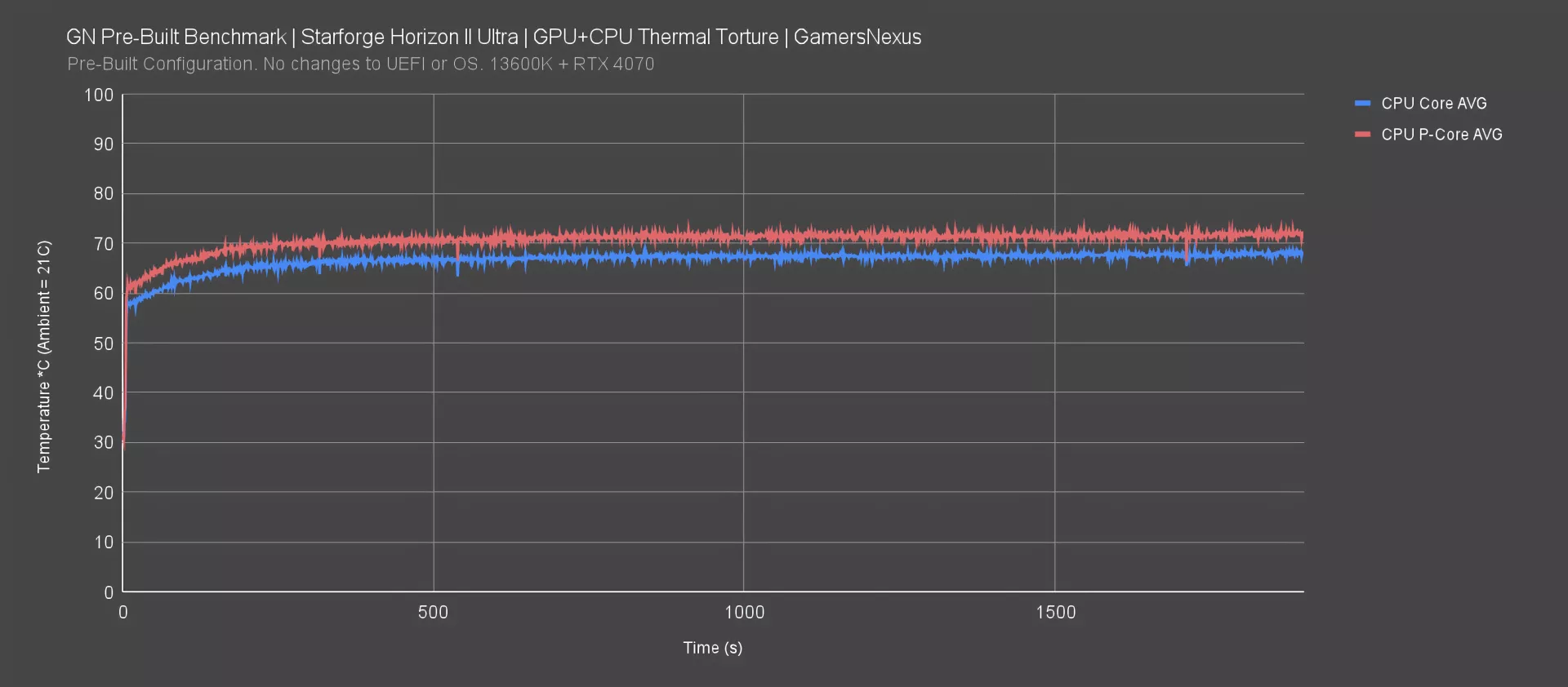 Bringing the Starforge Horizon II Ultra over to our pre-built testing station, we ran thermals for full system torture and CPU-only workloads.