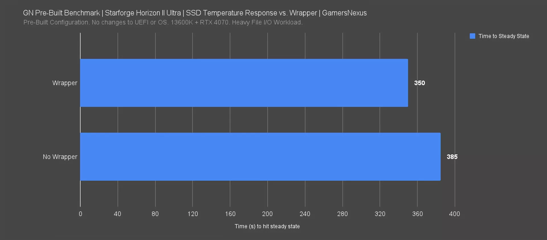 In this test, the steady state temperature ends up being the same since this drive is limited in how hot it gets (not due to throttling, but to overall performance), and ultimately, it’s just a barrier. That means the reaction time is affected, not the steady state.
