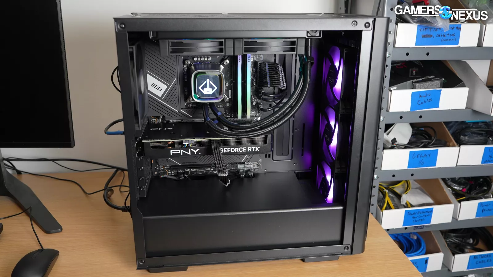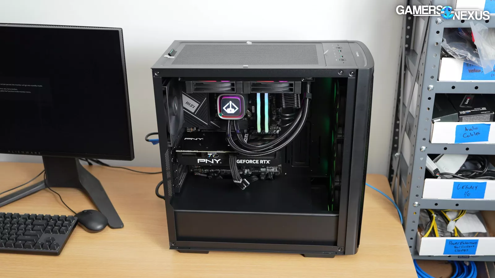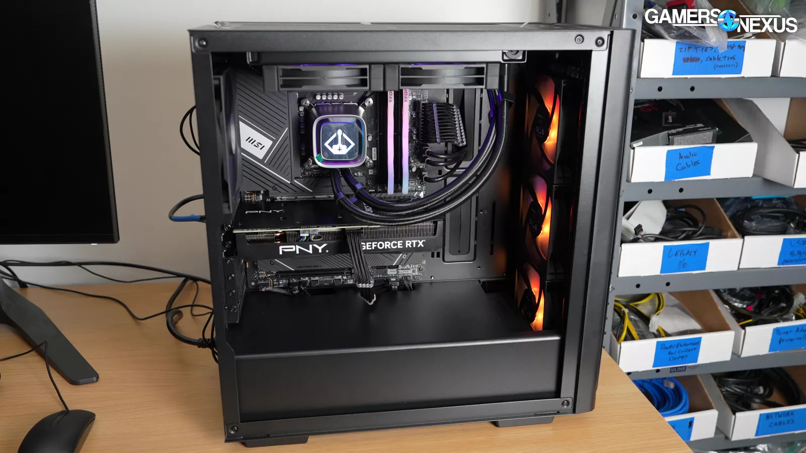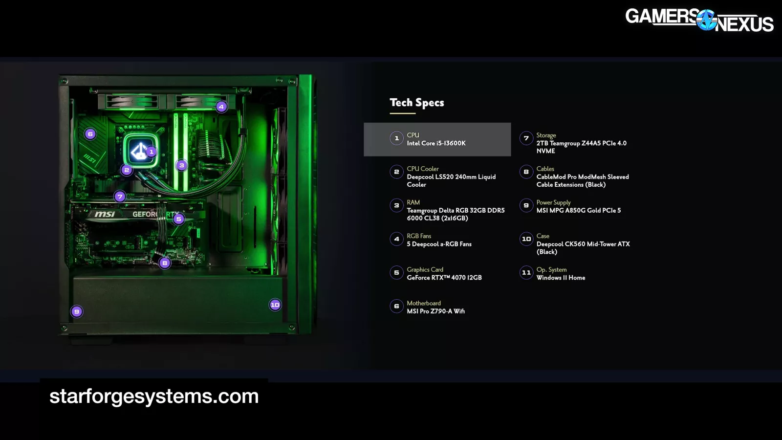 The system we’re reviewing in particular is Starforge’s Horizon II Ultra, but the SKU gets updated every now and then. We noticed that Starforge sometimes changes the liquid cooler or the precise SKU of some parts, but the overall build is mostly the same from one to the next and seems to coincide more with supply availability.