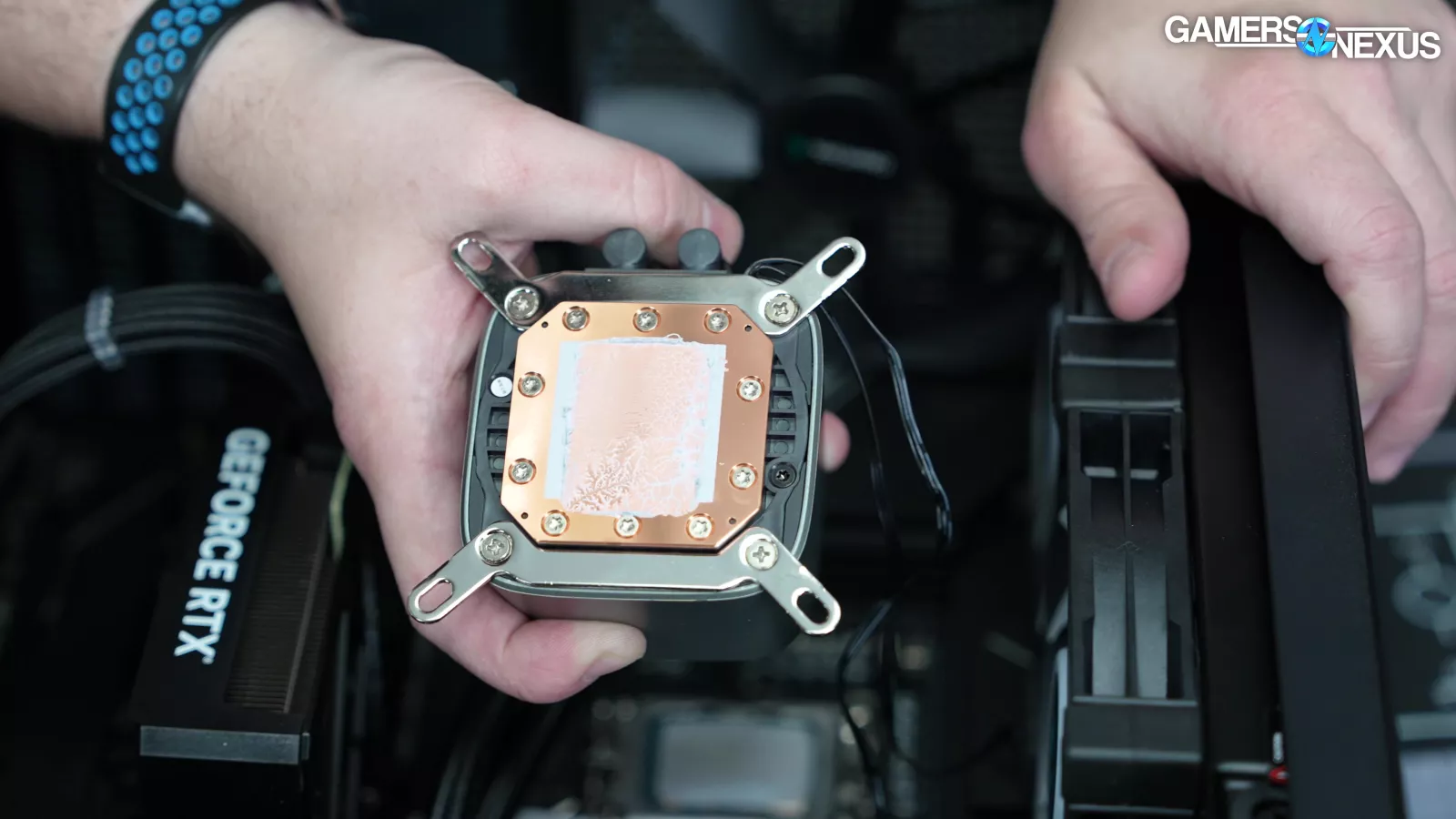 We also like to check the thermal paste coverage on the CPU in these reviews. Coverage is about as good as it can get for an Intel LGA1700 CPU, so whether that's applied via silk screen at the DeepCool factory (to the cooler) or by Starforge, it's done correctly.