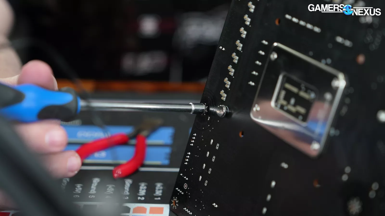 We also encountered one screw that was screwed into a standoff too tight, causing it to get stuck. We removed it with a hex driver at the back plus a Phillips driver at the front.