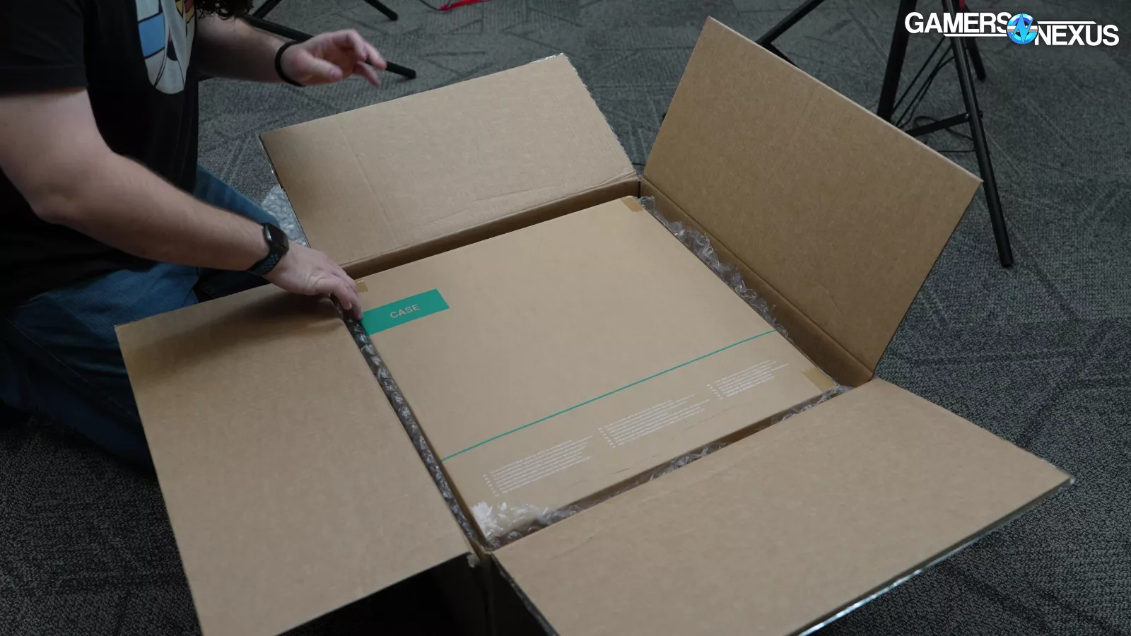 The Starforge system shipped within two boxes: There’s an outer cardboard box with one strip of bubble wrap on all sides, forming a relatively tightly packed configuration. The interior cardboard box is the case box, which itself uses two blocks of styrofoam from the case factory.