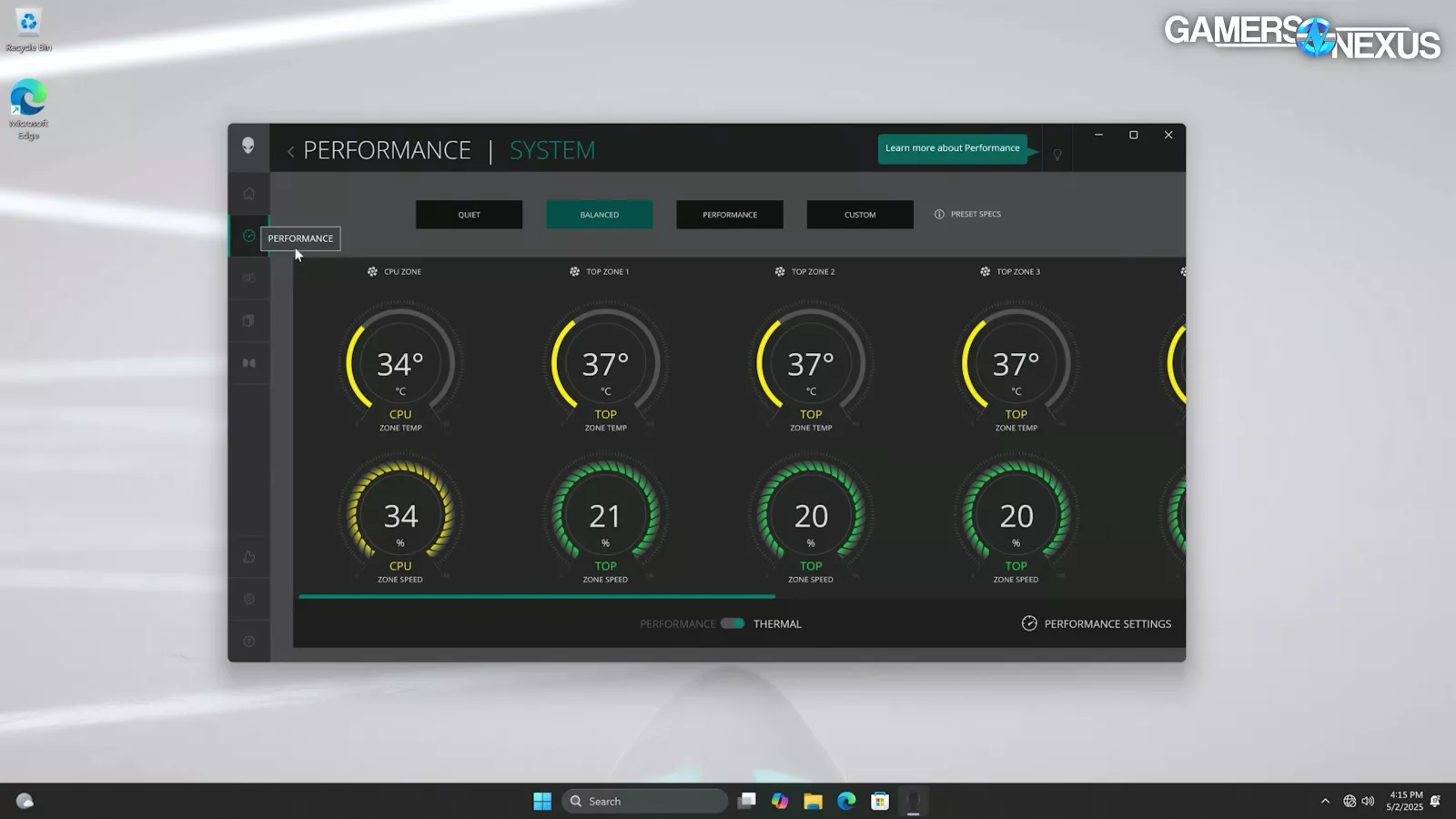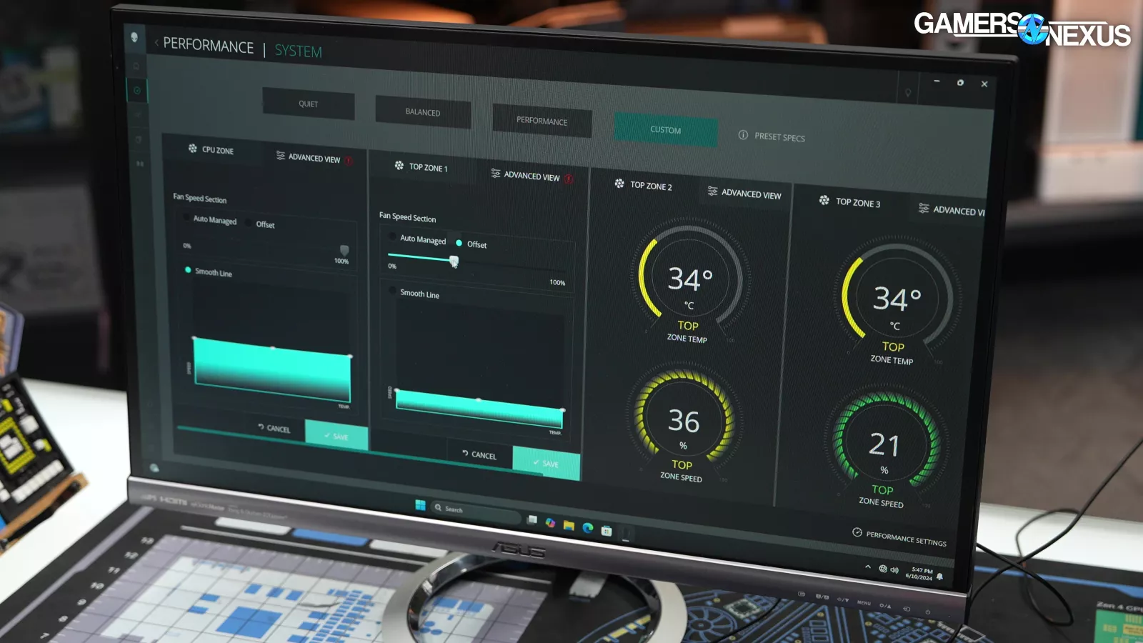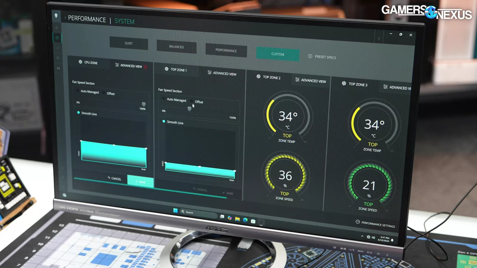 Performance idle was around 24-25dBA, ramping beyond 30dBA quickly, then settling in at 35.9dBA at steady-state. It’s not objectively that loud, but is by comparison to the reserved nature of the default curve.