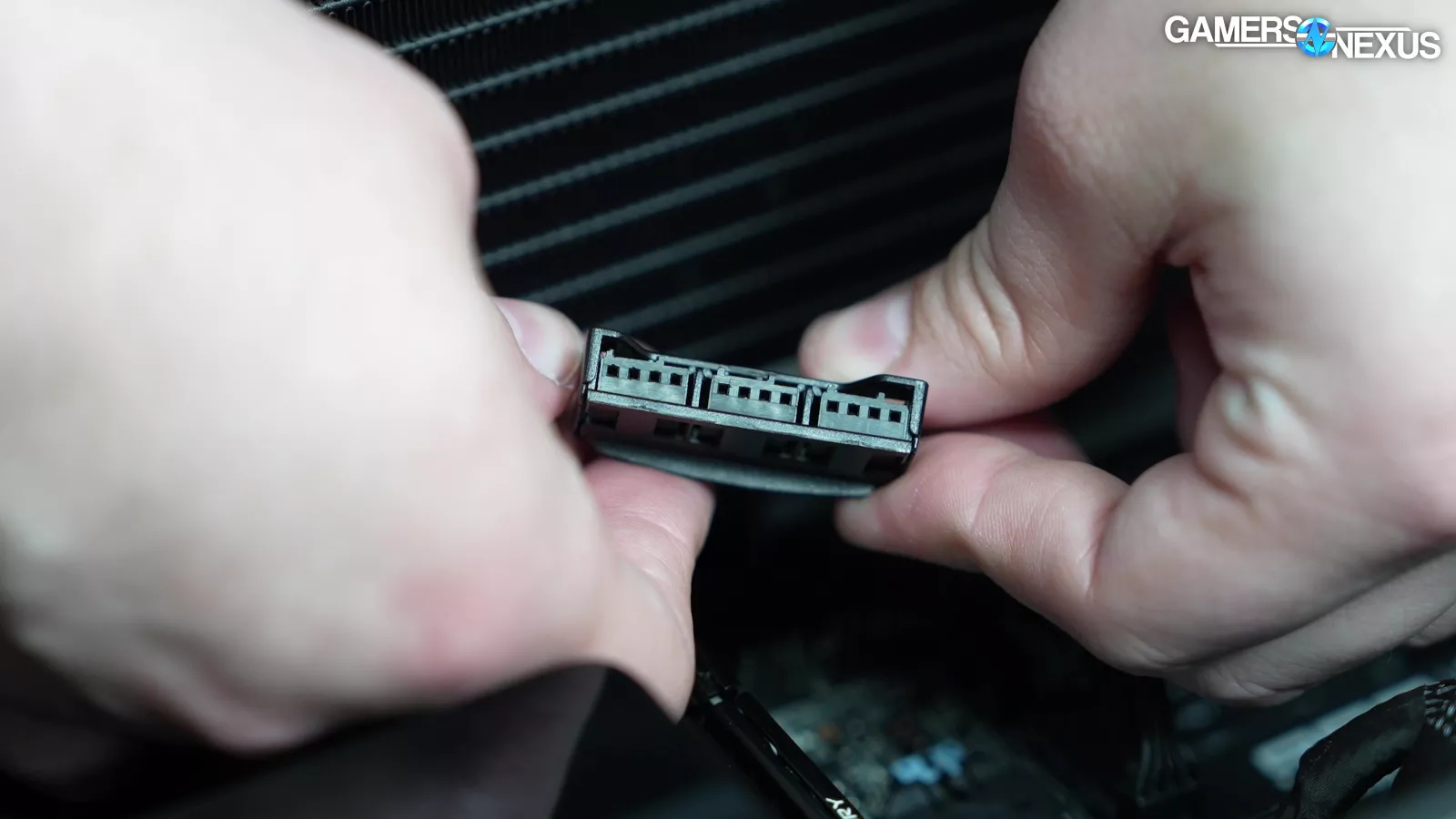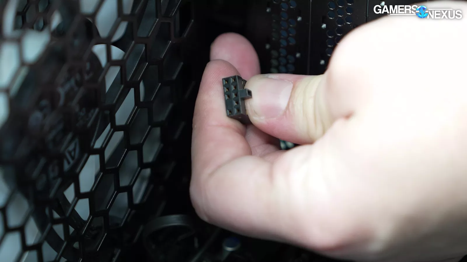 The system uses a fan header cage that creates a make-shift 12-pin connector.