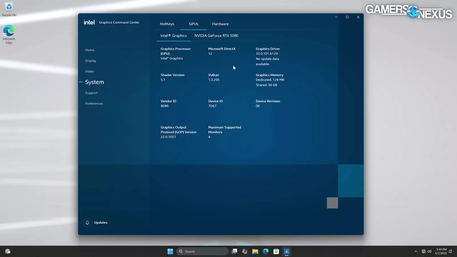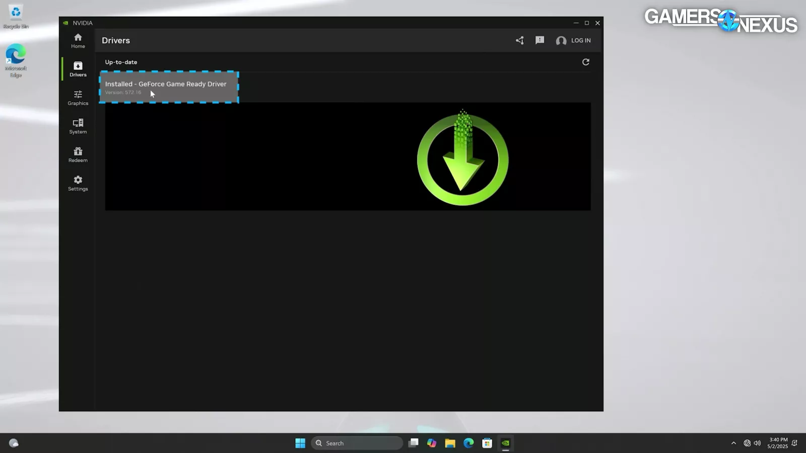 After hitting the desktop, we saw that all drivers were present, but the NVIDIA driver version was 572.16 from the 50 series launch on January 30th, despite newer versions being available at the time of build. Also, one of the Intel drivers was even older, dating back to October 2024, even though much newer versions are available.