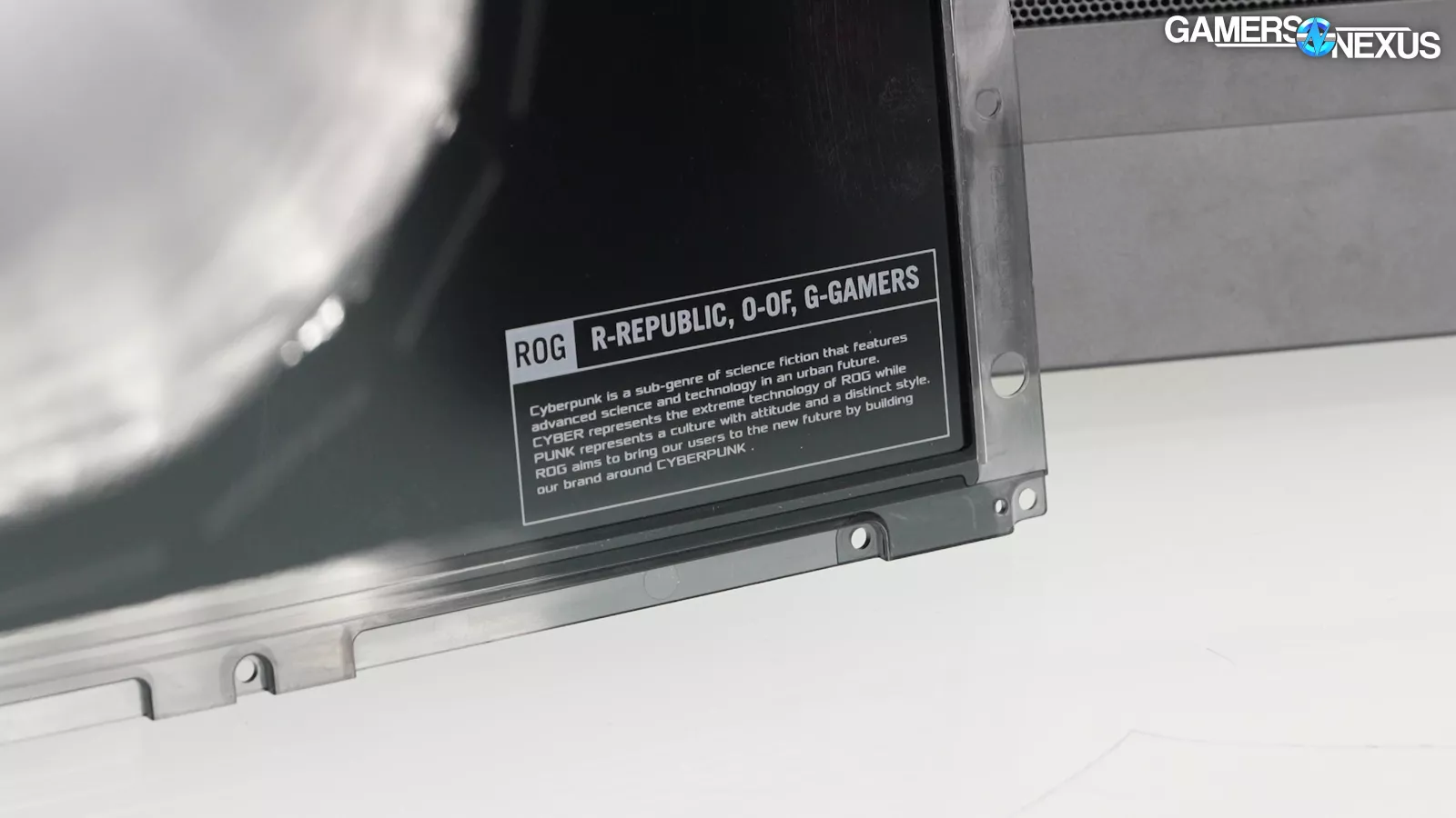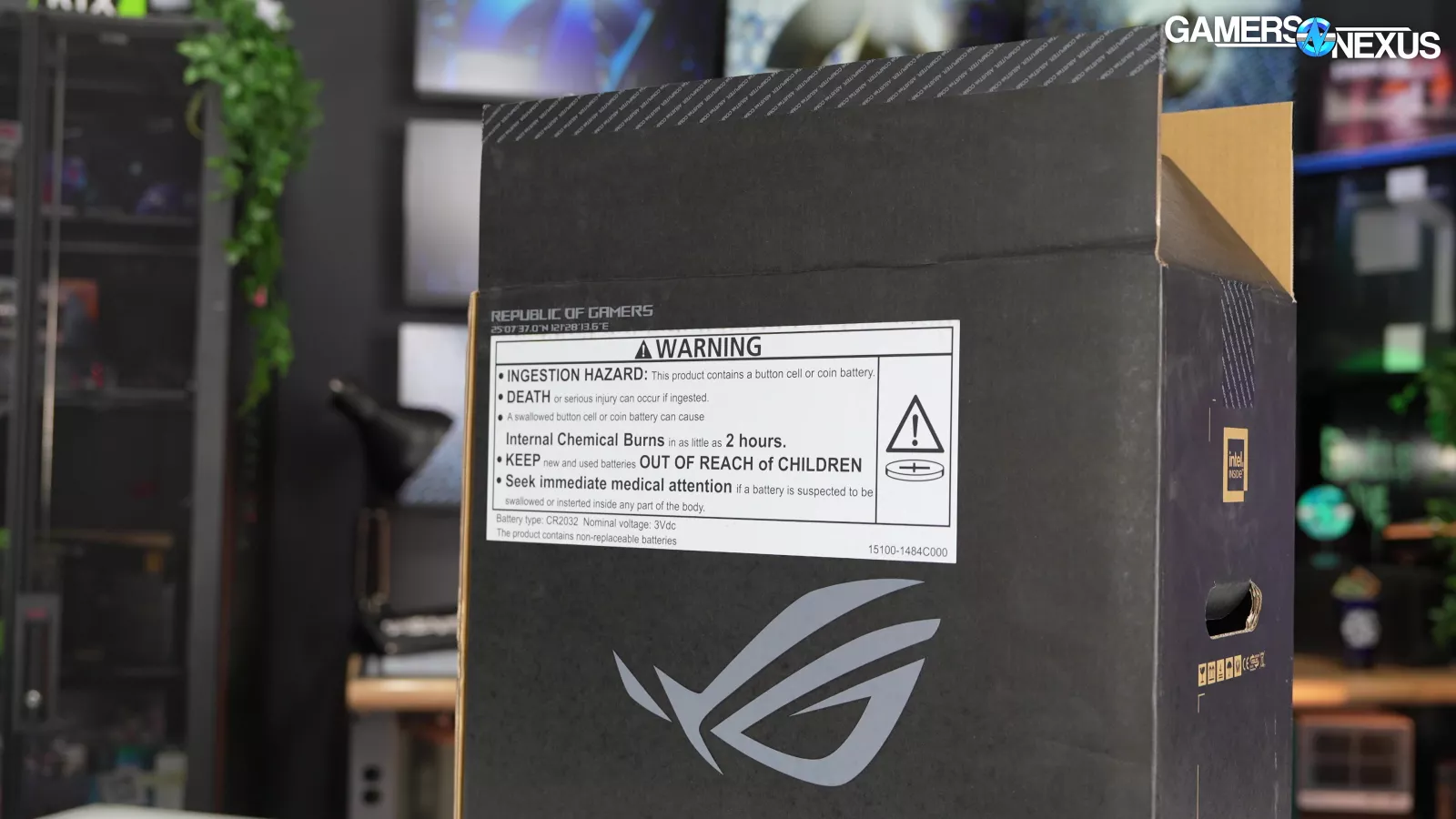 The computer is from ASUS’ self-branded R-REPUBLIC, O-OF, G-GAMERS and spends all of its overhead on the largest don’t-eat-batteries warning we’ve ever seen. This appears to have been made by the R-REPUBLIC O-OF L-LAWYERS.