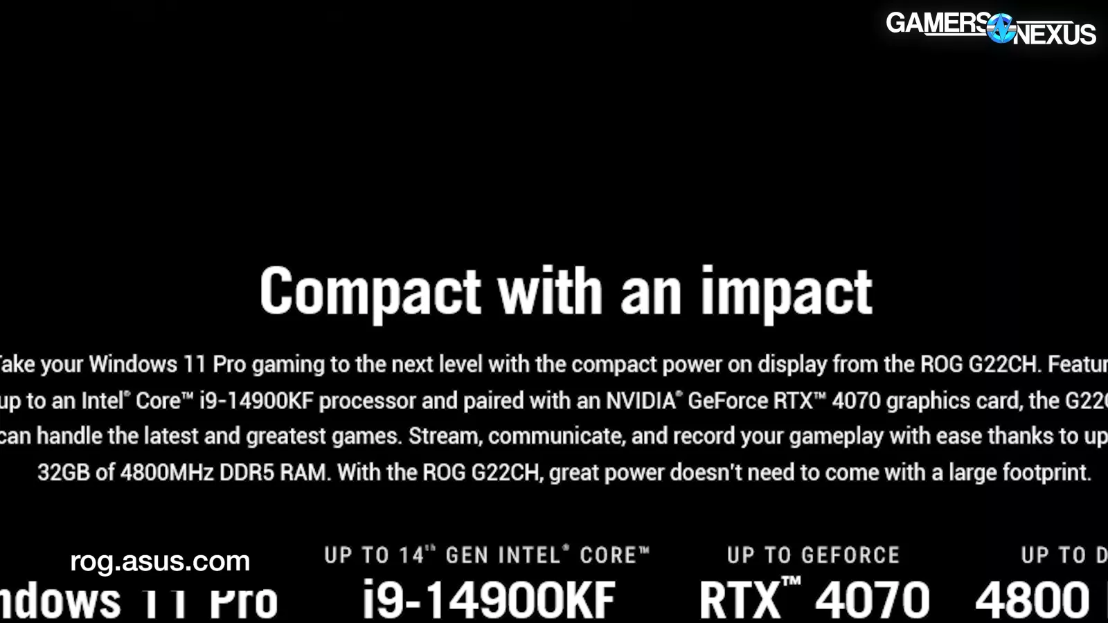 - The ASUS G22CH-DH978 pre-built is a compact sandwich-style PC with a 14900KF, RTX 4070, and 32GB of RAM