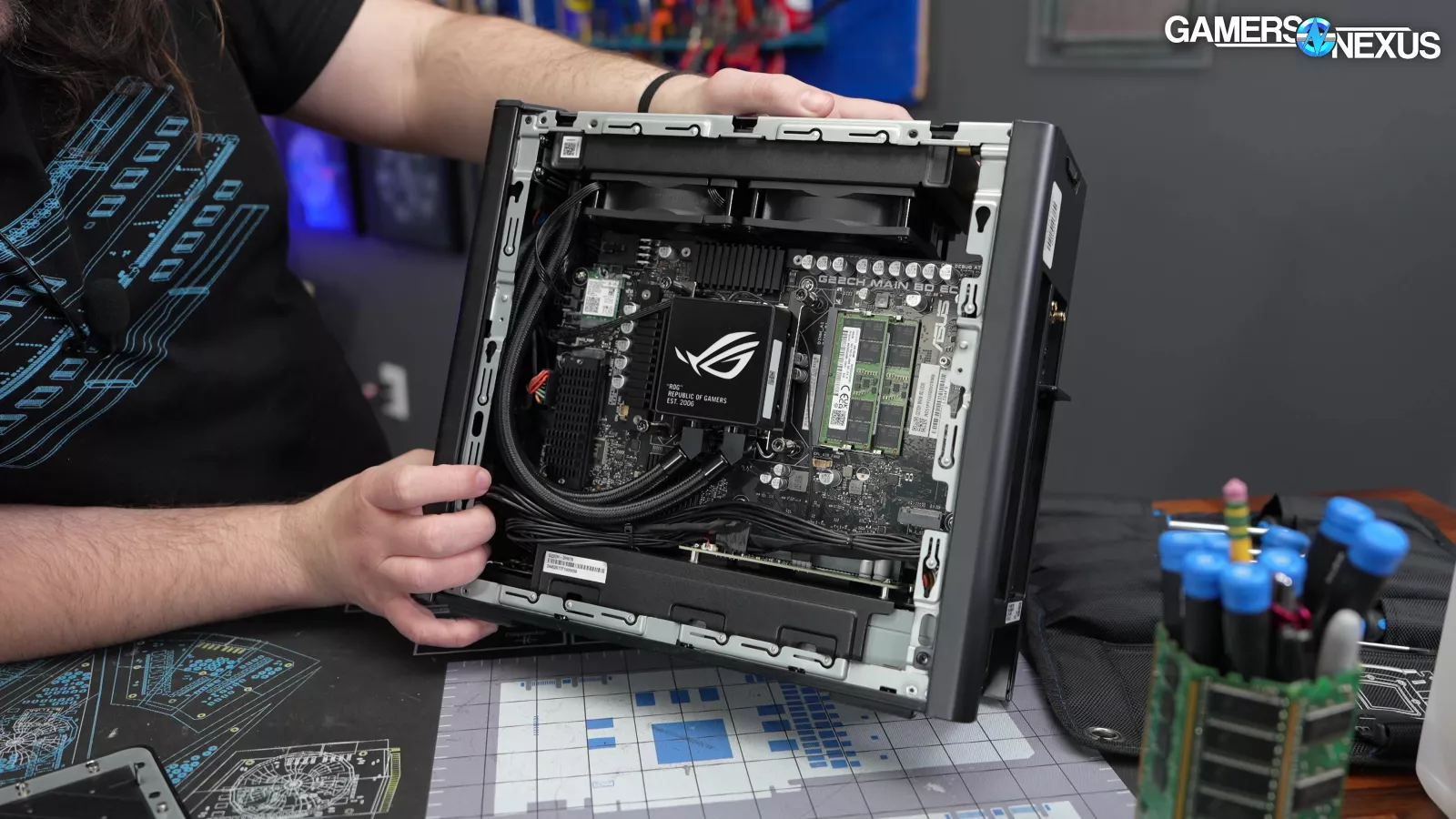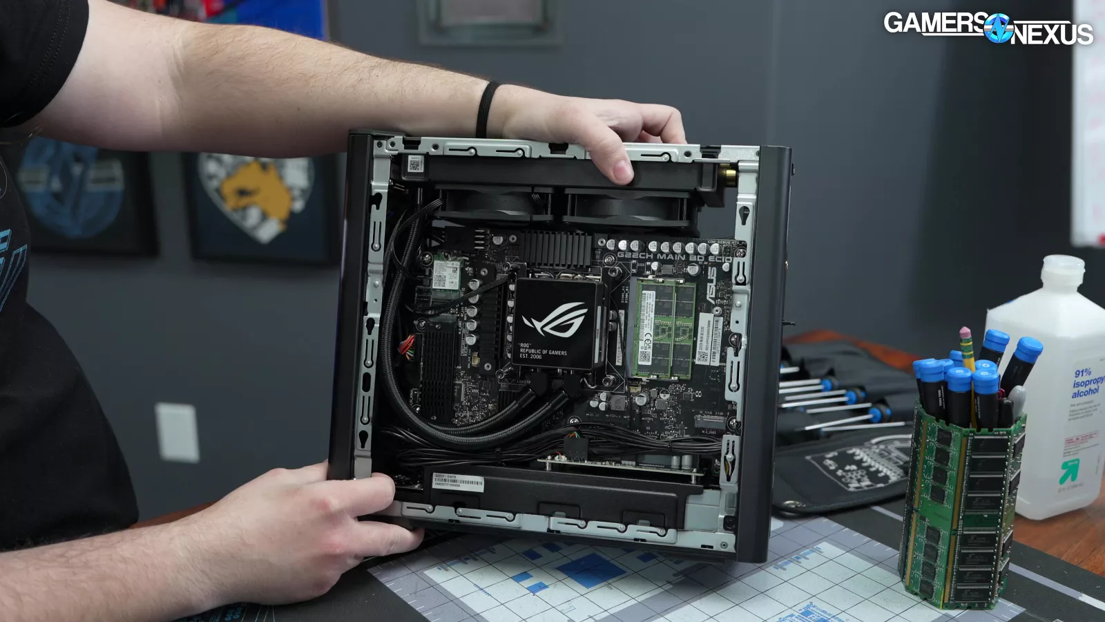 We always disagree with the use of proprietary or non-standard parts when industry standard parts would work just fine. In this case, ASUS not using a mini-ITX or microATX motherboard kills future upgradability of the PC. Flex ATX PSUs are also available for this form factor – they’re just rare in DIY – ASUS could source one relatively easily at its size.