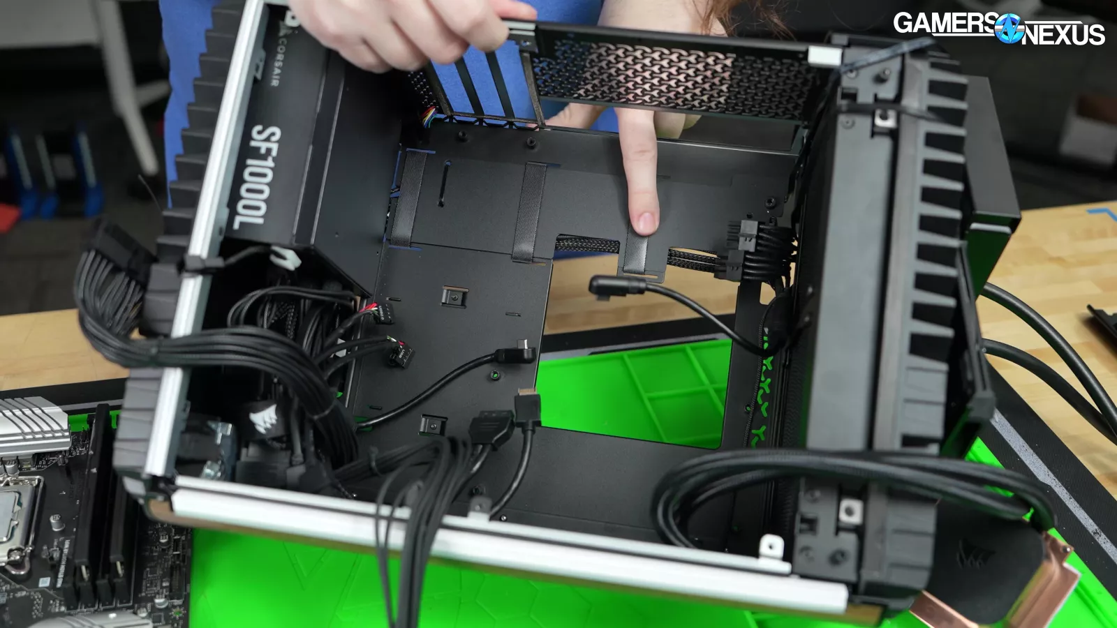 Removing the PSU, we can see some odd, massive screwed-in steel plates that hold the cables in place. Corsair is investing effort into the wrong areas to manage its cables.