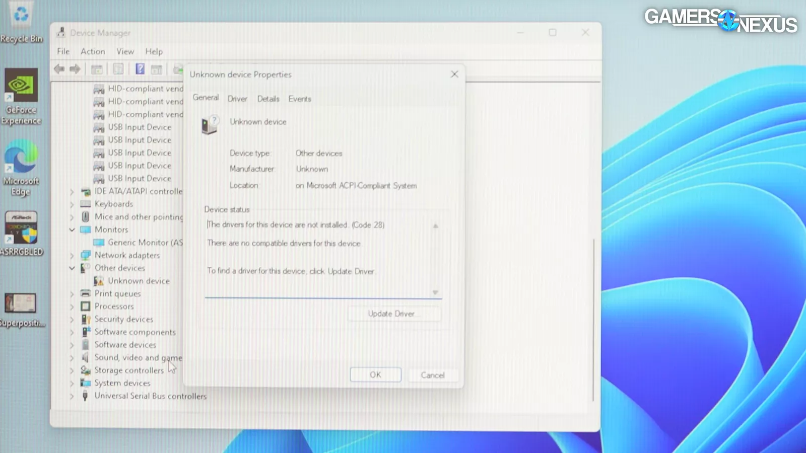 The system’s setup was also a major positive for Thermaltake. The BIOS was sensibly configured and the Windows 11 install was clean, with impressively fresh GPU drivers. The only oddity there was a missing X3D driver that’s only necessary to the dual CCD parts, which the 7800X3D isn’t. As general best practice, we still like to see all drivers installed and no yellow bangs (!) in the device manager.
