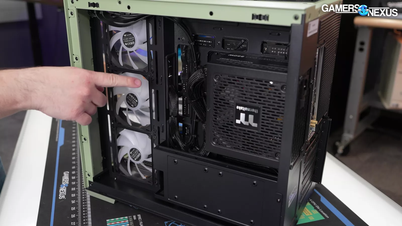 We think it’d be better to boost these speeds at least a couple hundred RPM to make some use of the fans, as currently, they are borderline ornamental at those speeds. It would actually result in a quieter system if Thermaltake slightly dropped the speed of the higher RPM fans and slightly increased the speed of the side fans, as they’d get rid of some of the higher frequencies in the noise spectrum by reducing the higher RPM fans. This would yield a better overall balance for the system than setting a few fans high and the rest so low that they do nearly nothing.